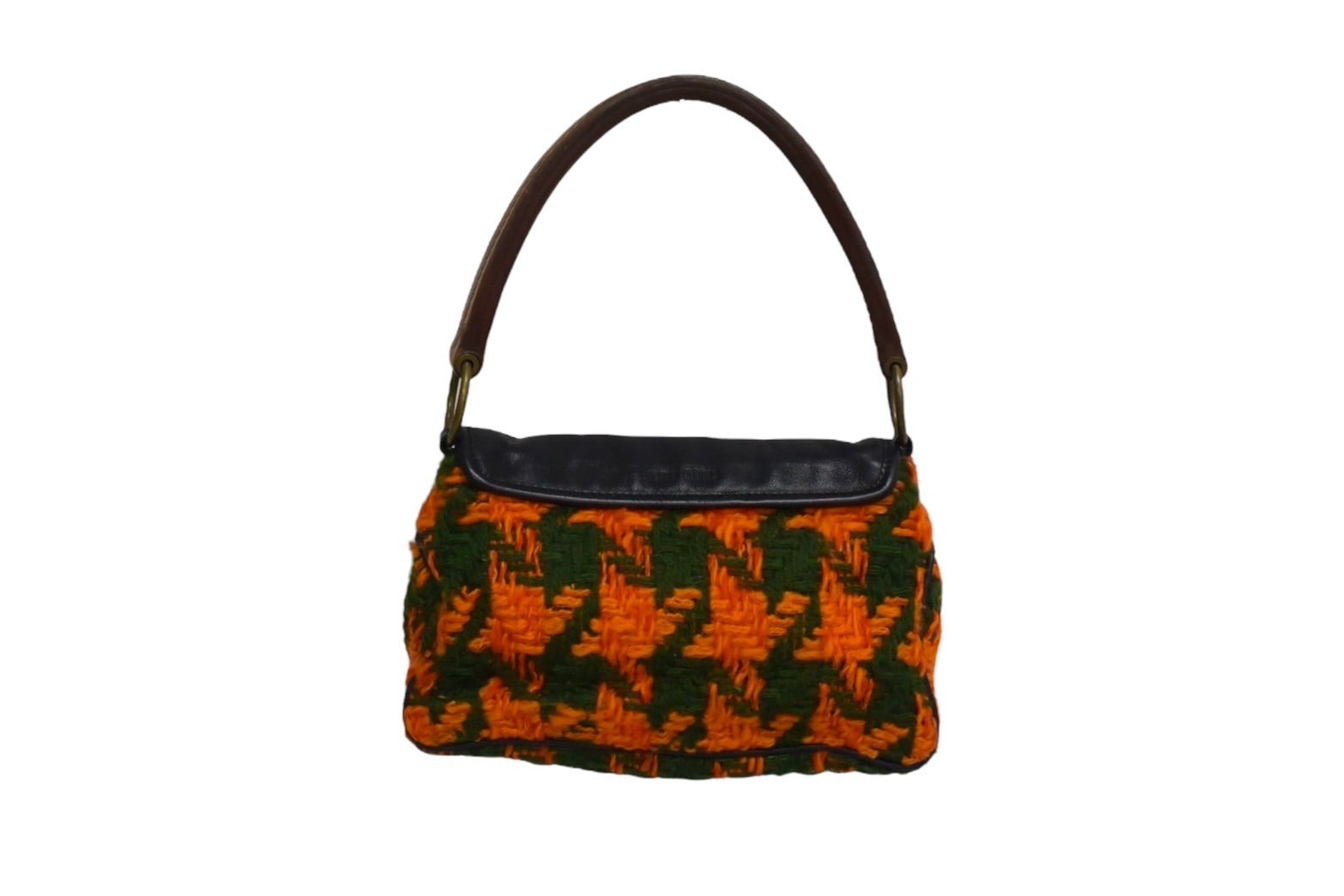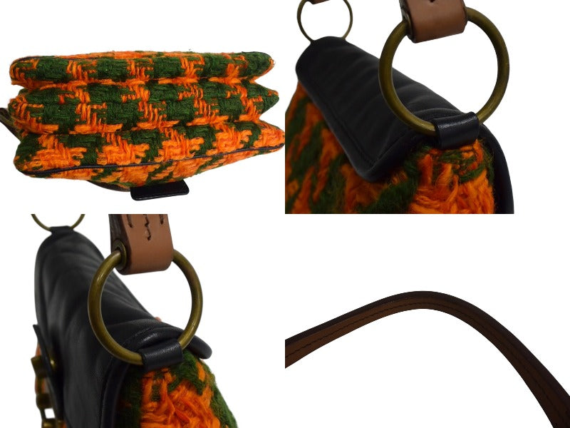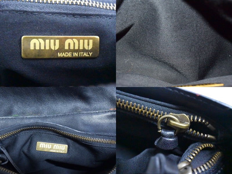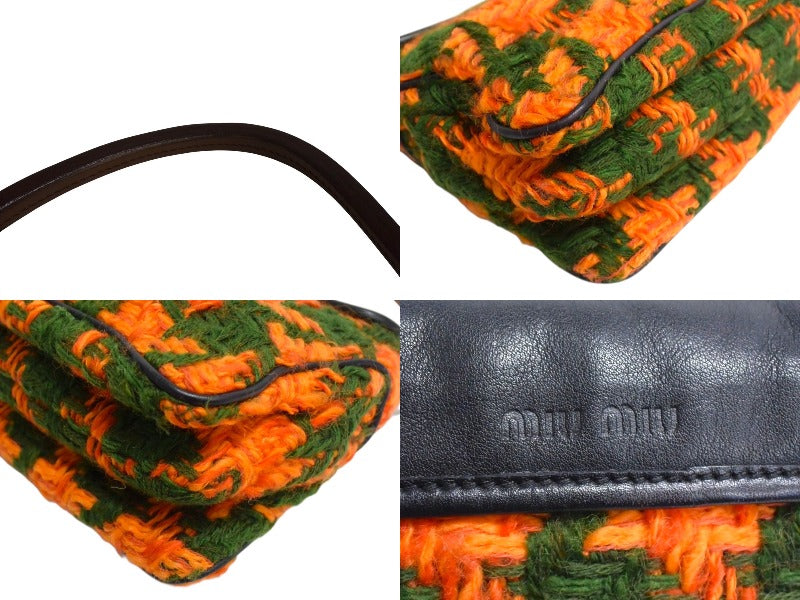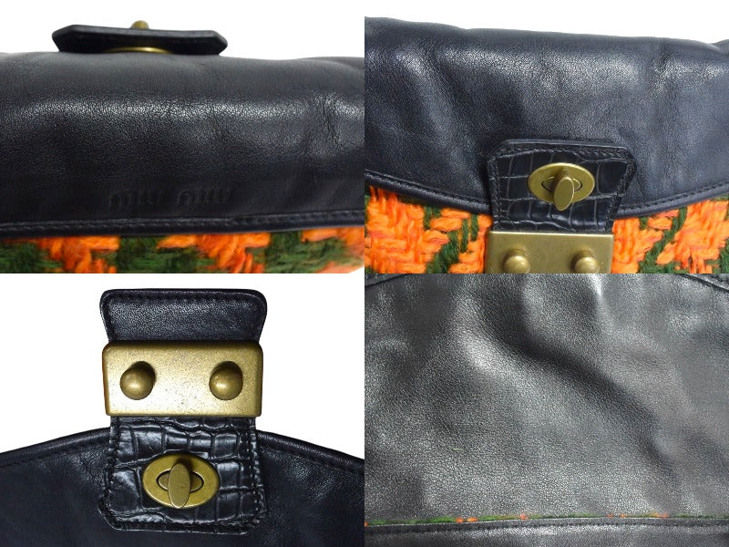 MIUMIU ミュウミュウ ワンショルダーバッグ ハンドバッグ 2way レザー ウール ブラック マルチカラー ゴールド金具 美品 中古 4b003450