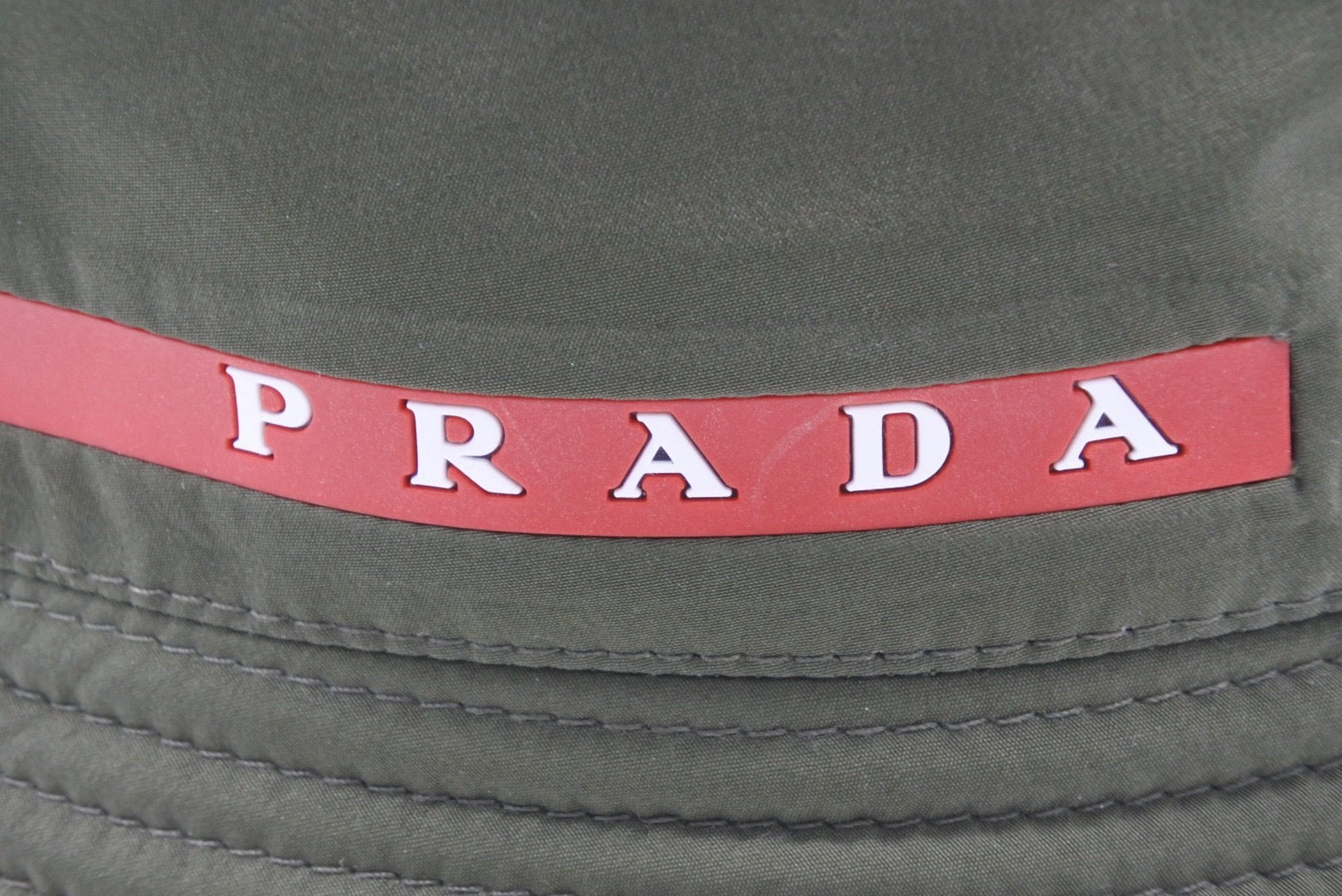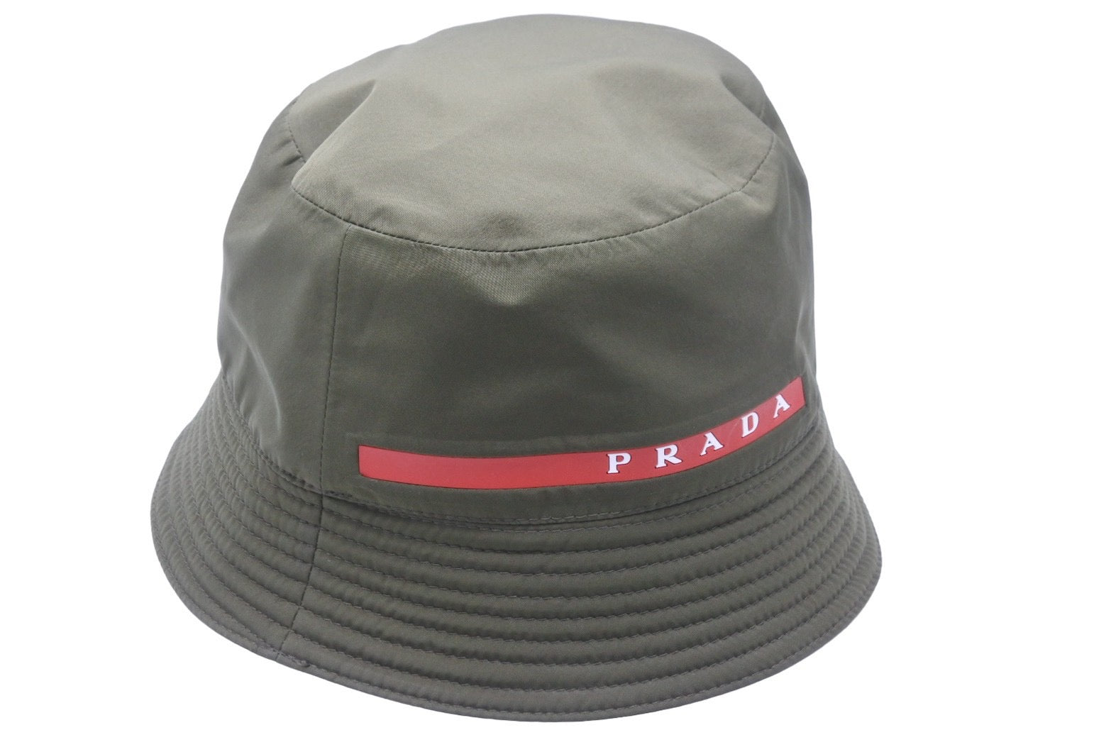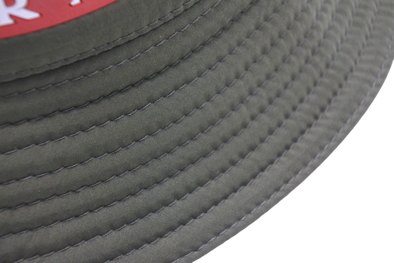 レッドのラバーロゴのついたオーセンティックなデザインのバケットハットです。
