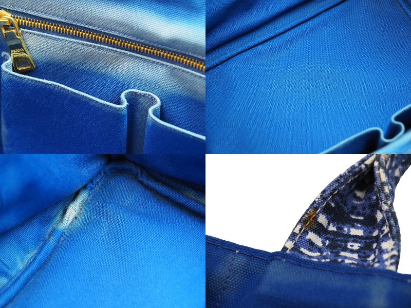 持ち手シミあり、金具小傷あり、裏面色褪せ、汚れあり、保存袋汚れあり、その他目立つ傷や汚れ無く良品です。