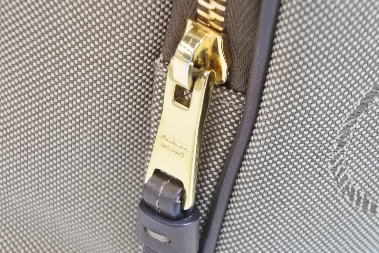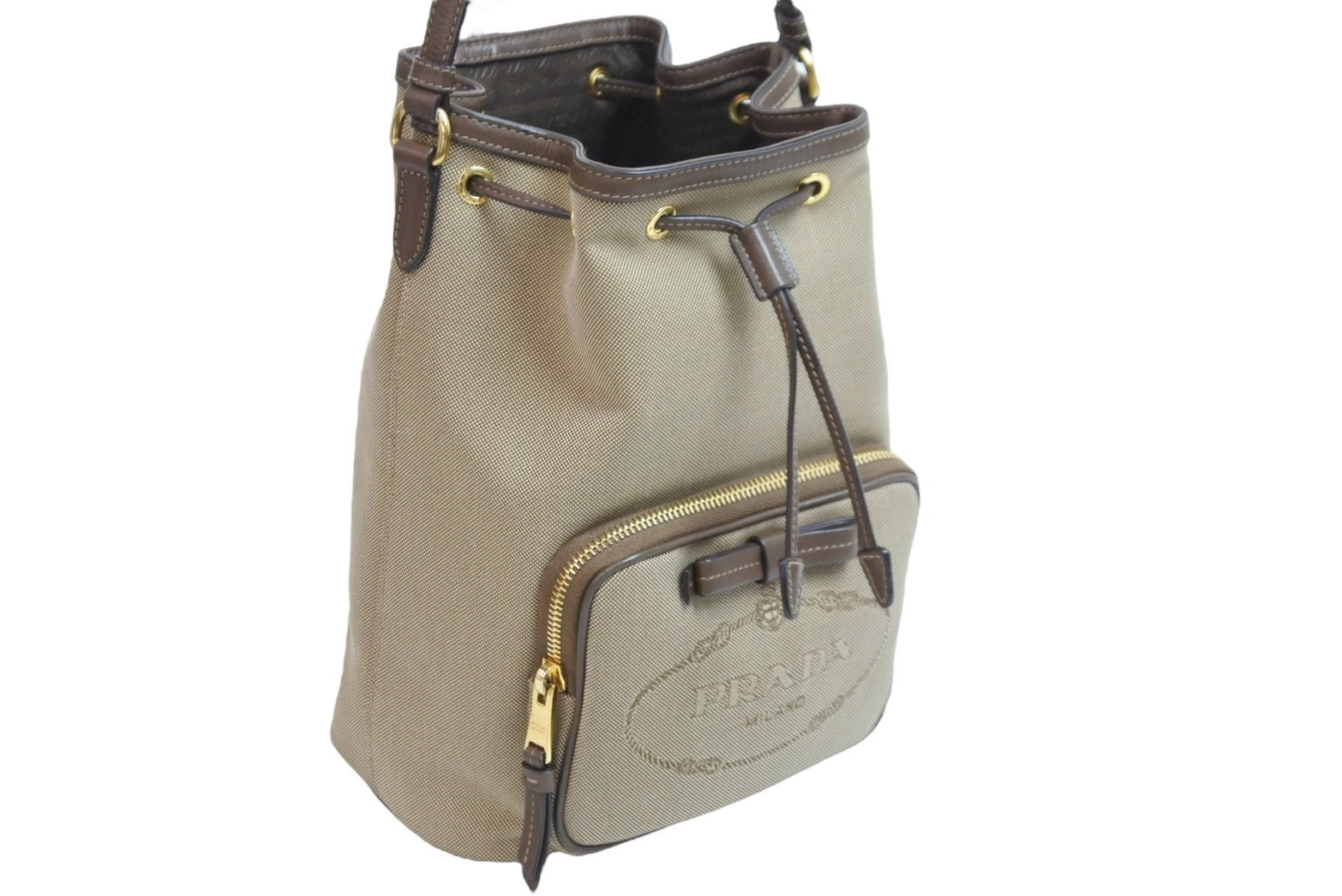 PRADA プラダ ハンドバッグ 巾着バッグ 1BH097 キャンバス ベージュ ブラウン ゴールド金具 美品 中古 52075