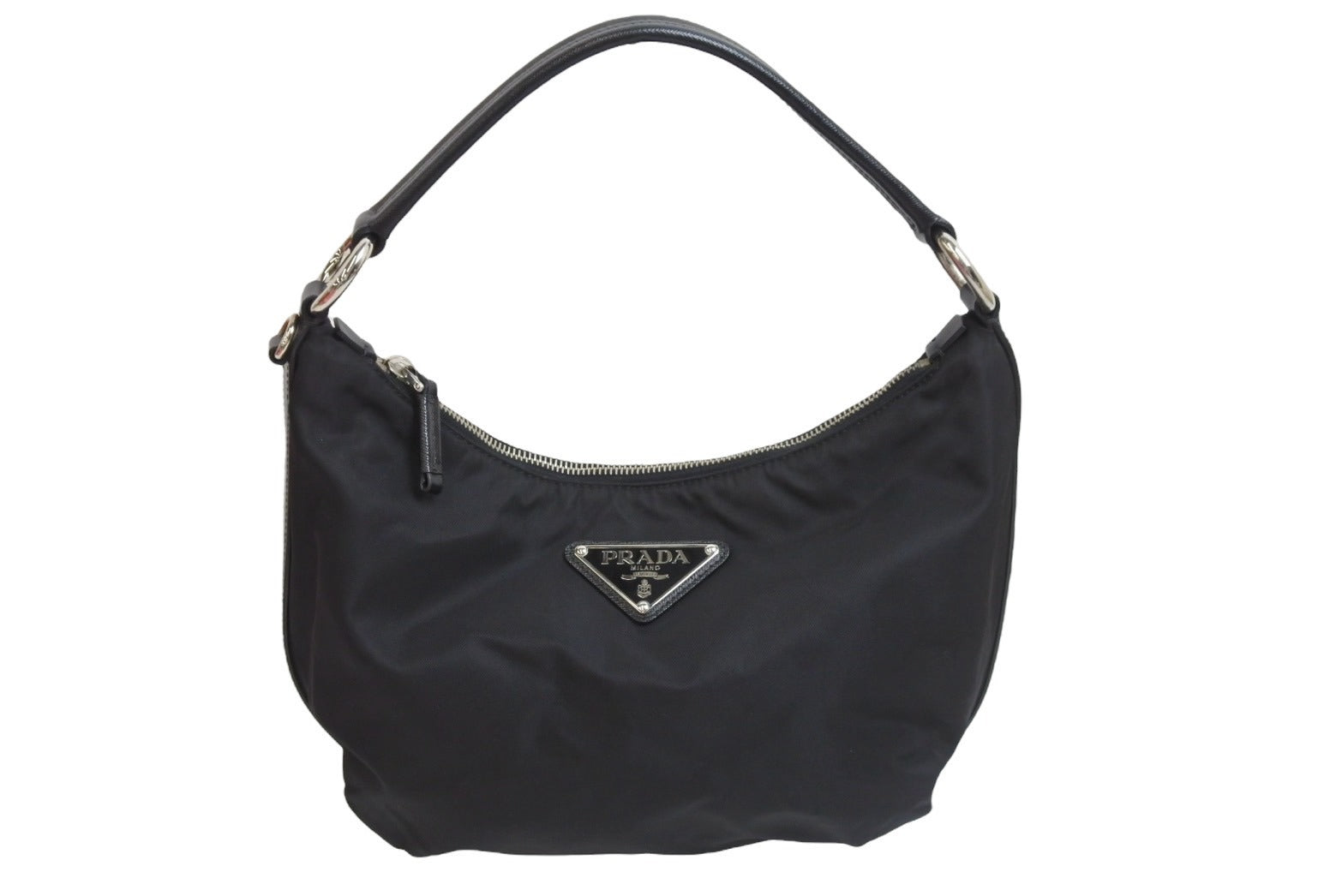 極美品 PRADA プラダ ハンドバッグ ワンショルダー トライアングルロゴ BR3332 ナイロン ブラック シルバー金具 中古 54325
