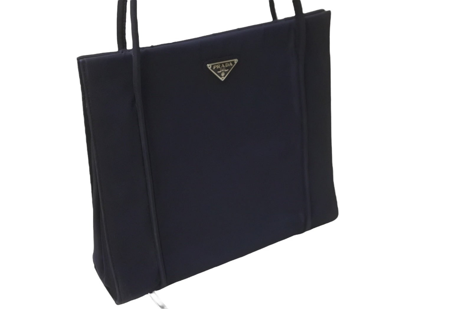 PRADA プラダ トートバッグ ネイビー ナイロン トライアングルロゴ イタリア製 シルバー金具 中古 54440