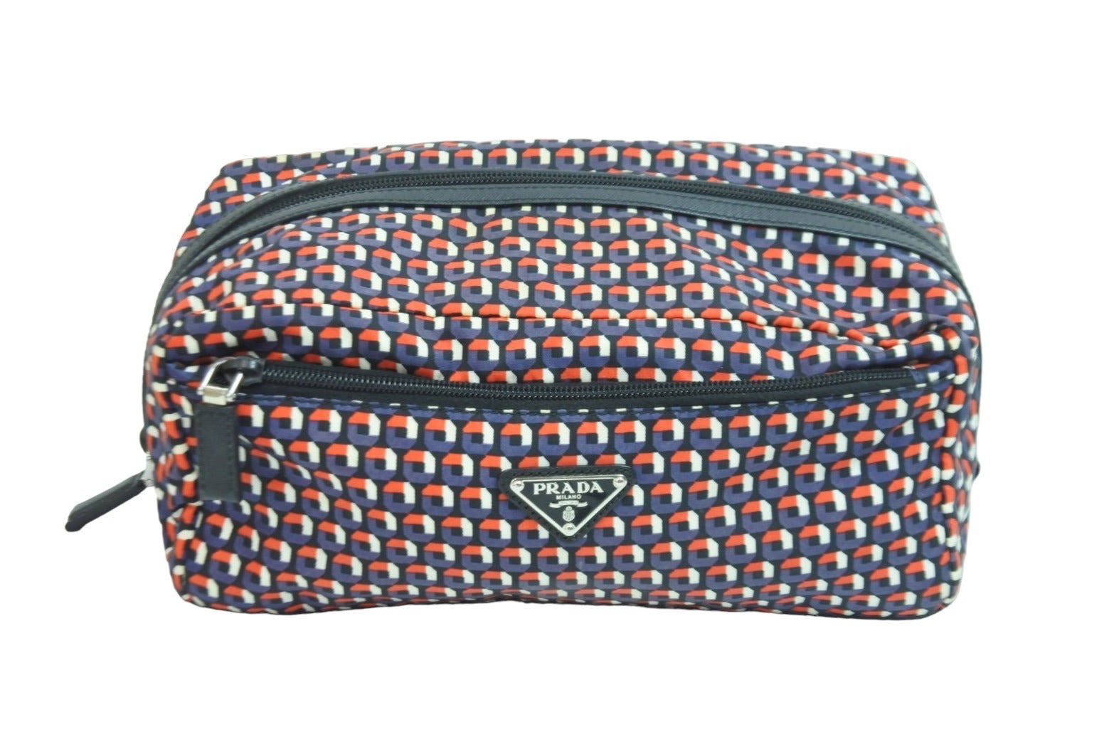 極美品 PRADA プラダ 総柄 ナイロン ポーチ マルチカラー サフィアーノ セカンドバッグ クラッチバッグ ロゴ 中古 54790