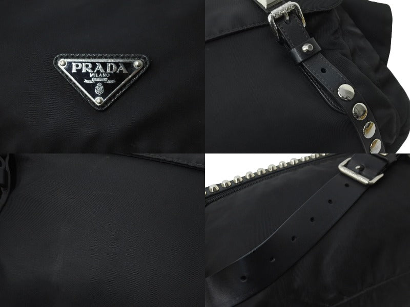 表面、マチ、左右横、裏面にスレと汚れあり。フラップ内側全体的に擦れと汚れあり。ファスナー金具剥げあり。トライアングルロゴ、ベルト金具部分、ショルダー金具に傷あり。ショルダー裏ほつれあり。