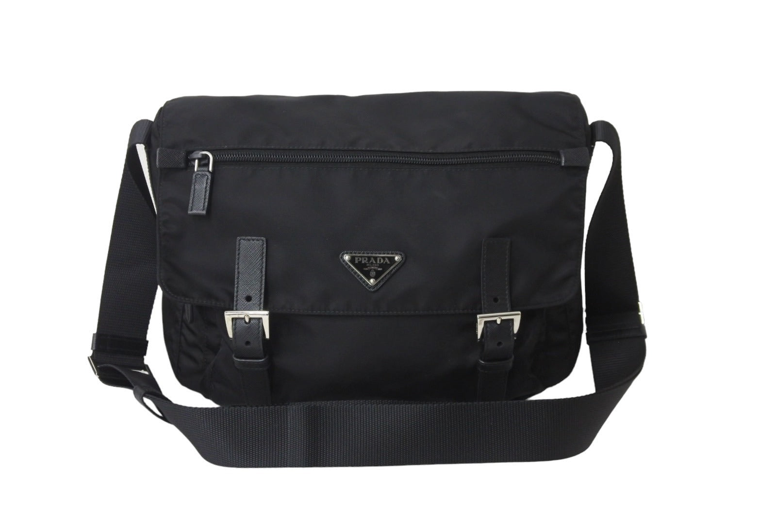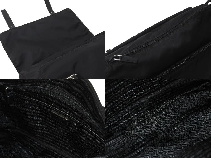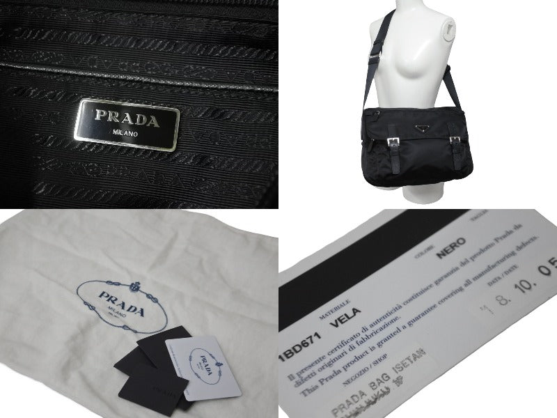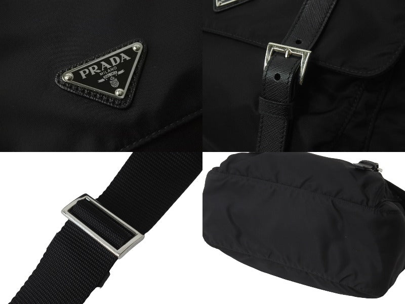 極美品 PRADA プラダ ショルダーバッグ メッセンジャー トライアングルロゴ ブラック ナイロン 1BD671 ブラック 中古 55903
