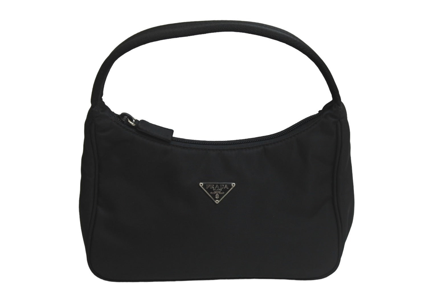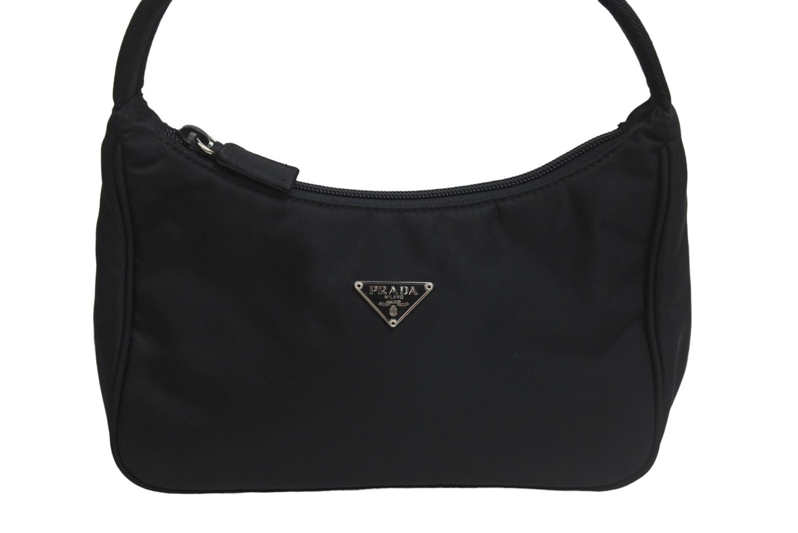 PRADA プラダ ハンドバッグ ワンショルダー MV515 ホーボー ミニバッグ 三角ロゴ ブラック シルバー金具 美品 中古 56231