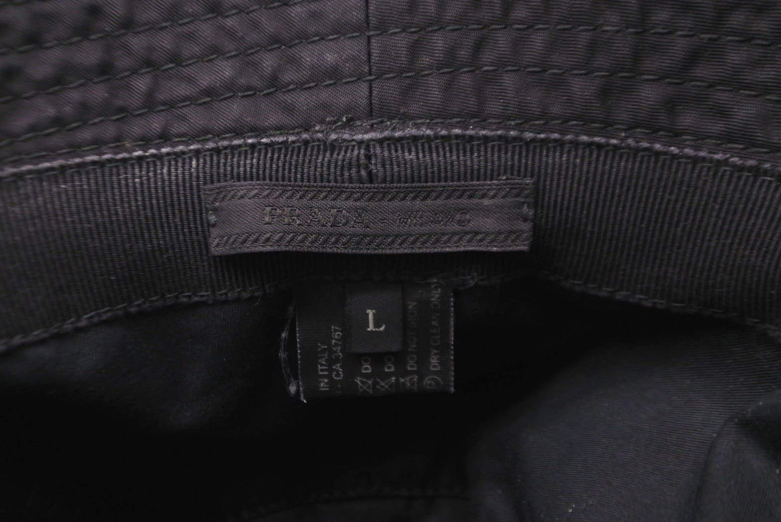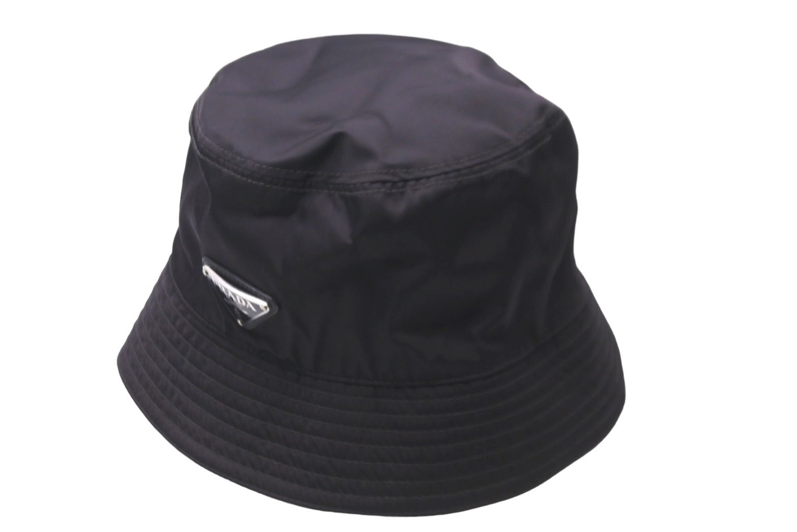 PRADA プラダ バケットハット 帽子 ブラック ナイロン 三角ロゴプレート サイズL 良品 中古 58190