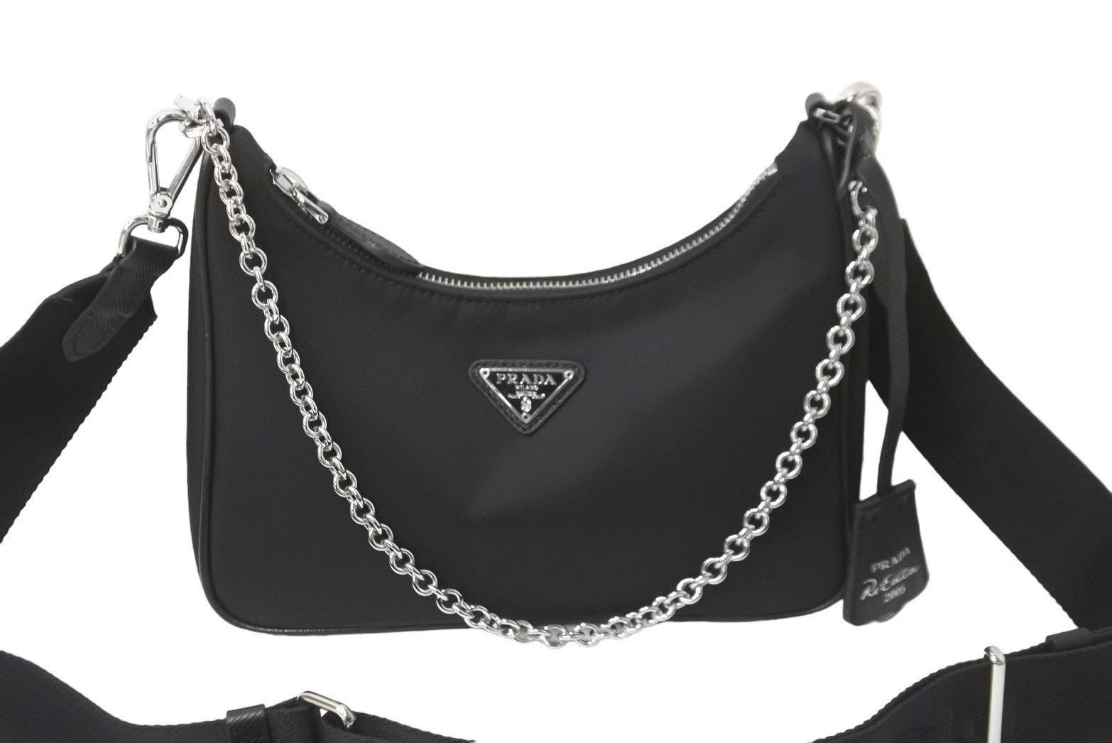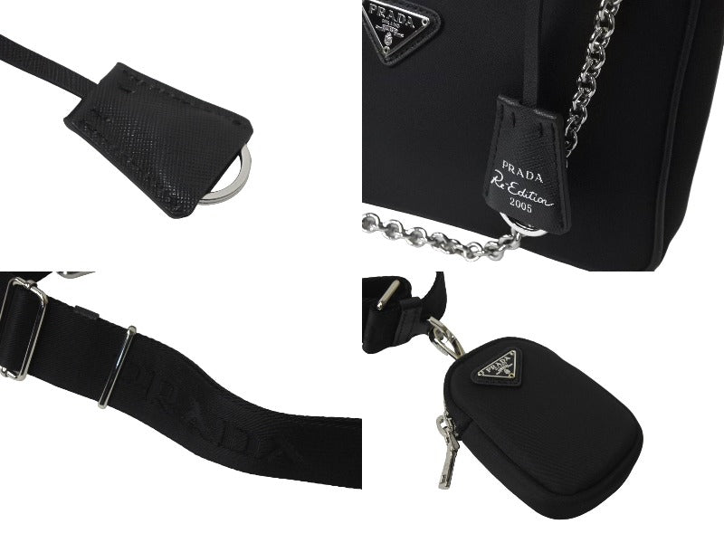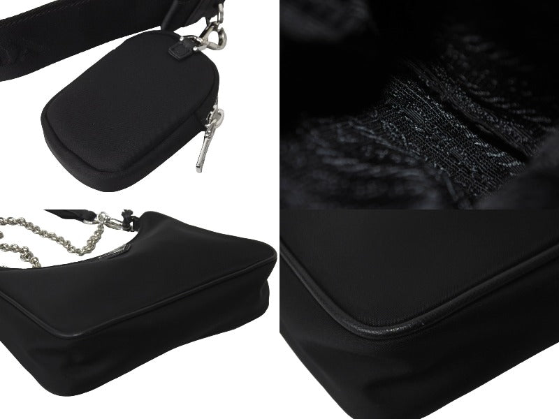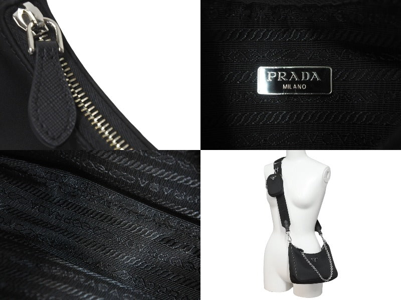 PRADA プラダ ショルダーバッグ ホーボー ポシェット ポーチ ストラップ付き Re-Edition 2005 1BH204 シルバー金具 美品 中古 59125