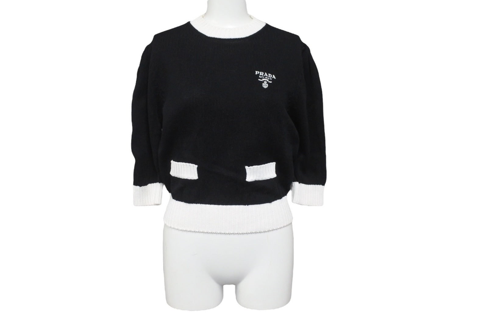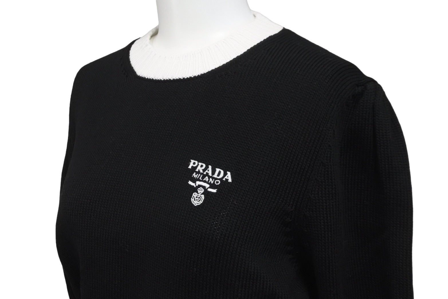 レトロ感を演出するカラーコントラストとミニマルなデザインが特徴のエレガントで洗練されたクルーネックセーター。リブ編みのトリムとサドルショルダーが女性らしさを引き立てる、刺繍ロゴ入りのアイテムです。