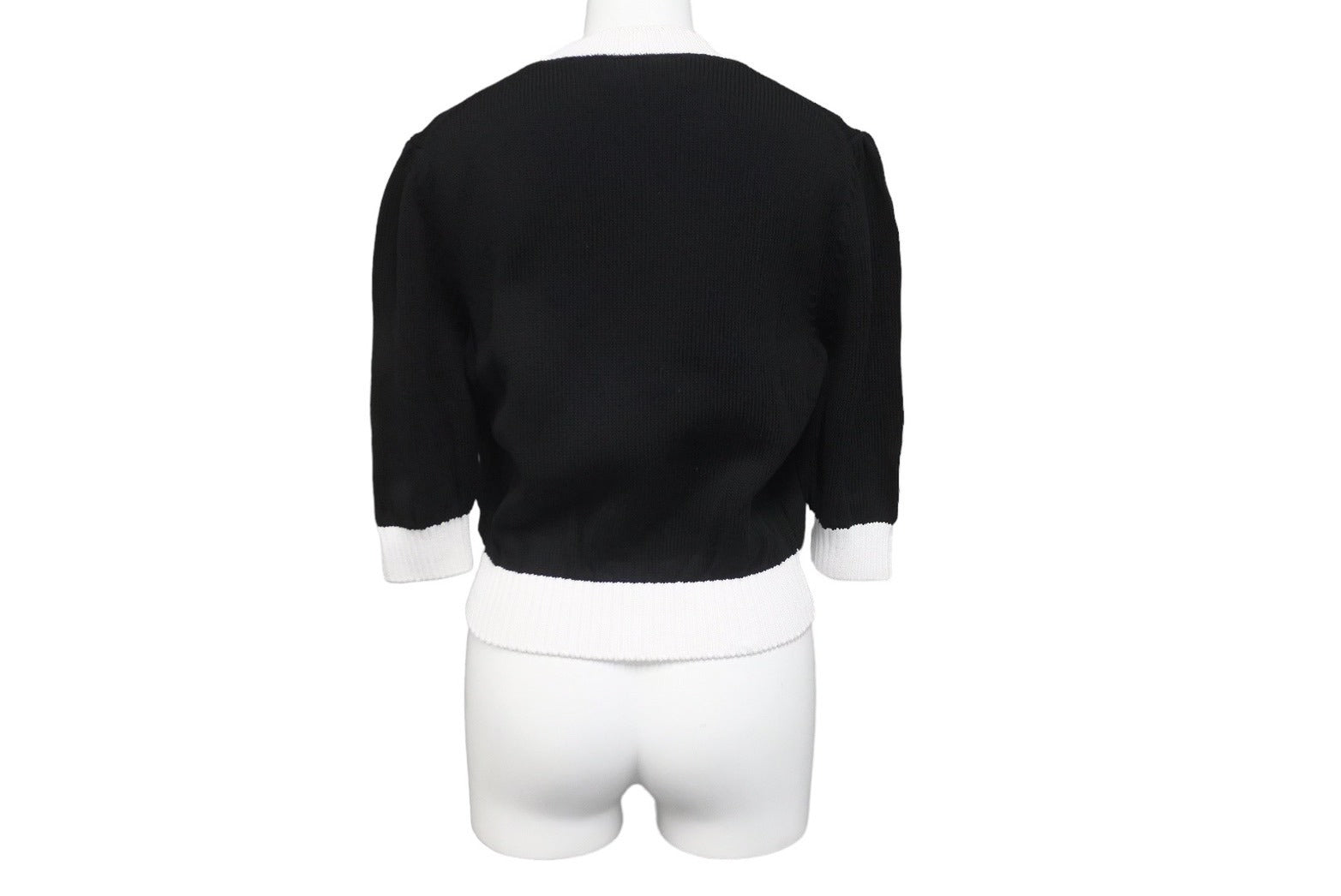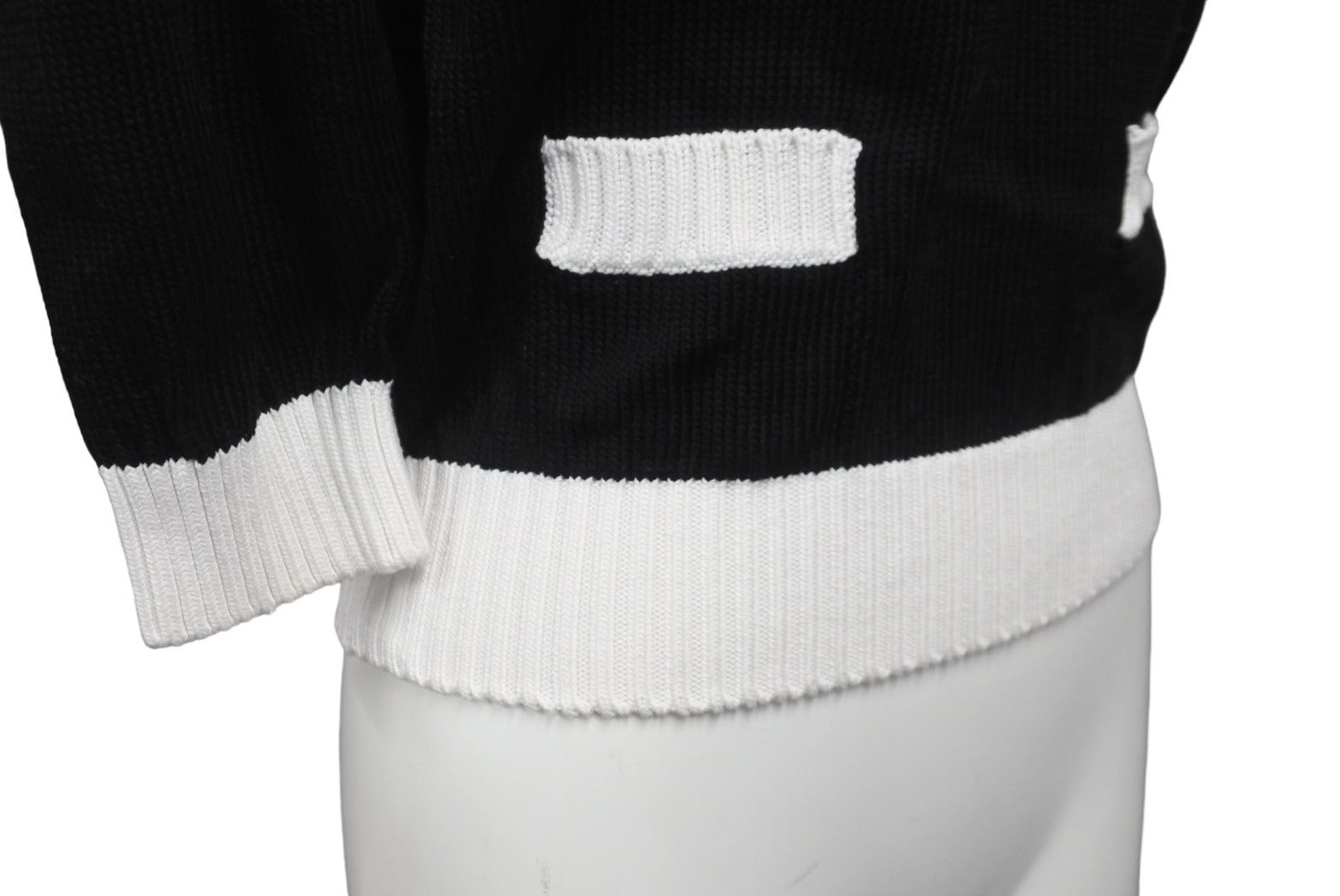 首元内側汚れあり。袖口毛玉とほつれあり。タグ片側取れあり。