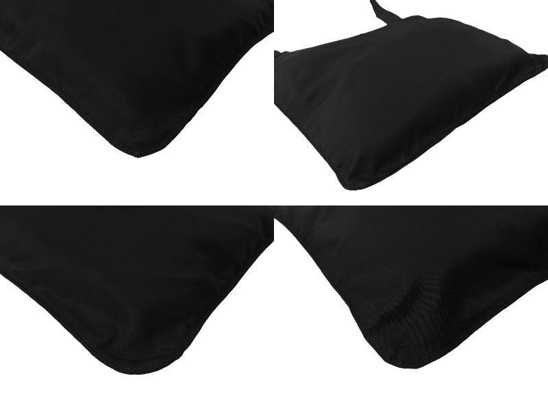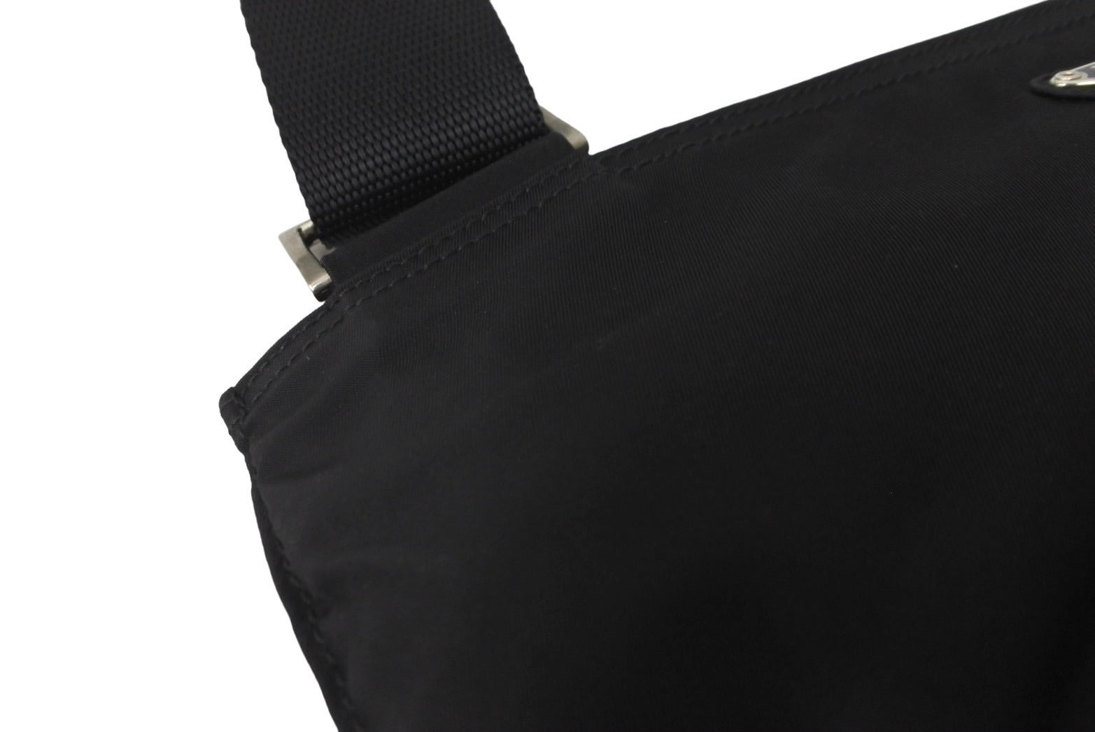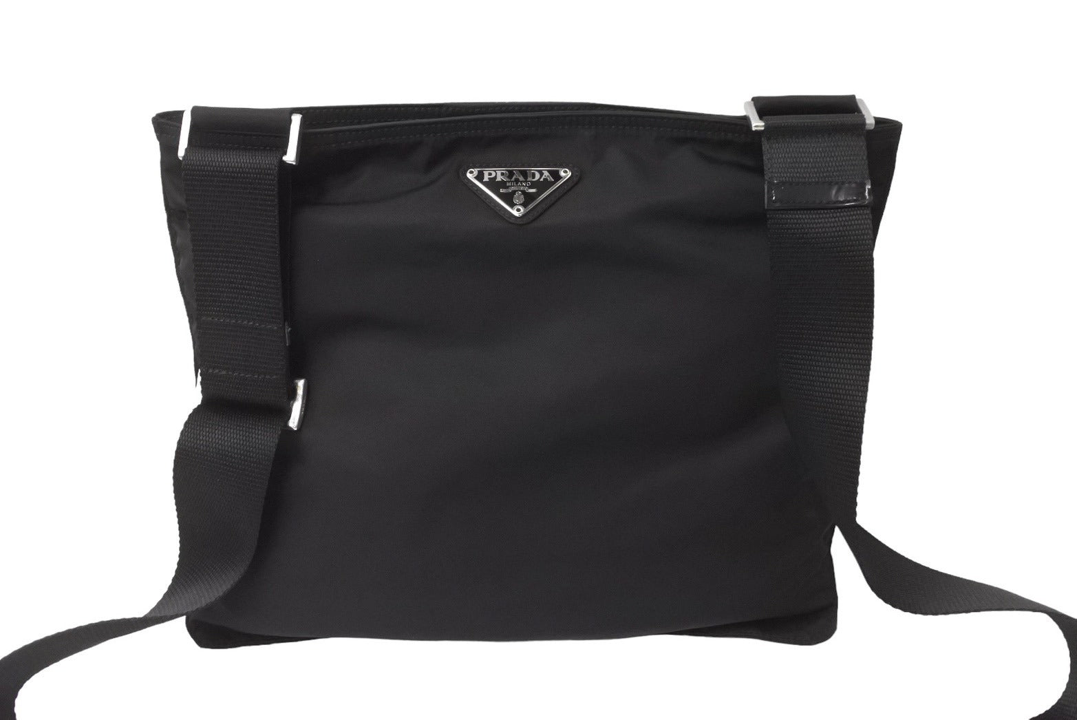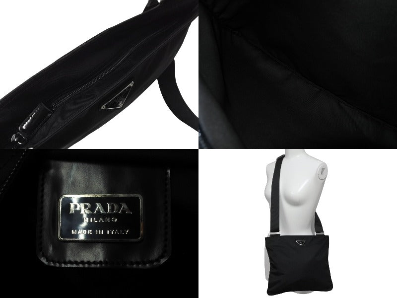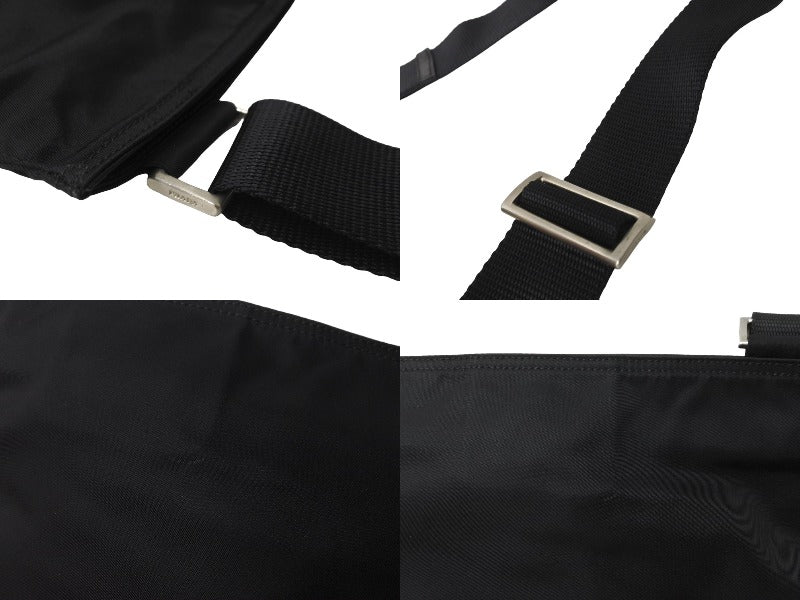 PRADA プラダ ナイロン ショルダーバッグ ブラック トライアングルロゴ レザー 黒 鞄 斜め掛け シルバー金具 美品 中古 64081