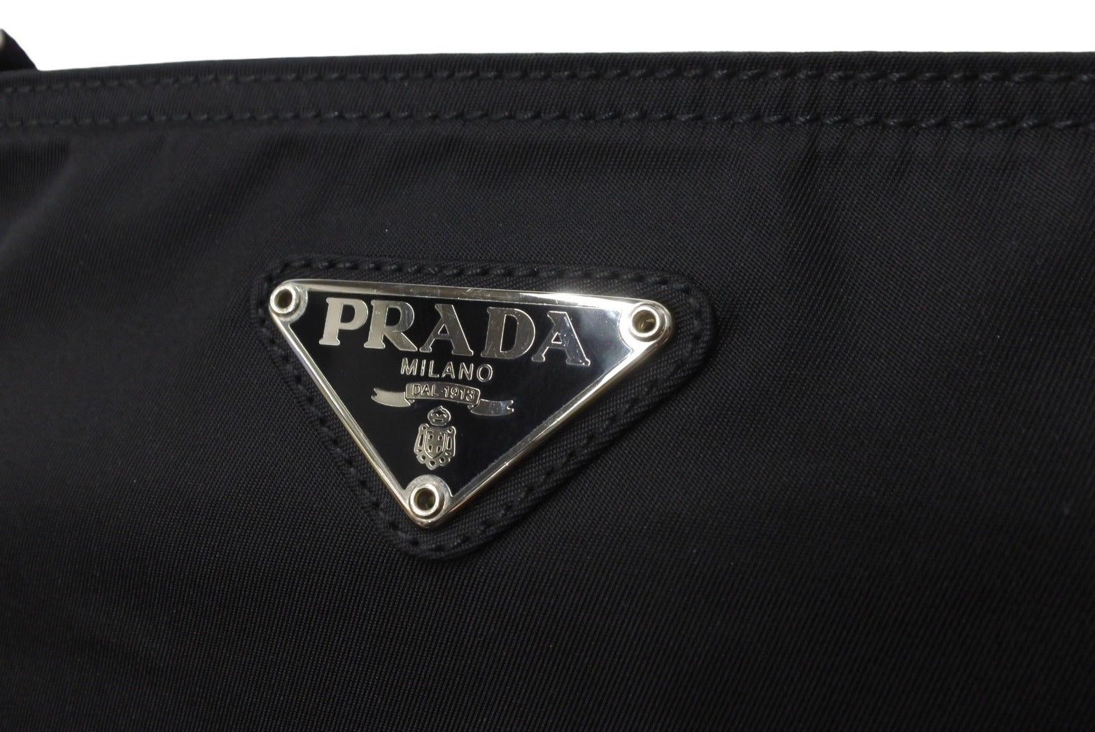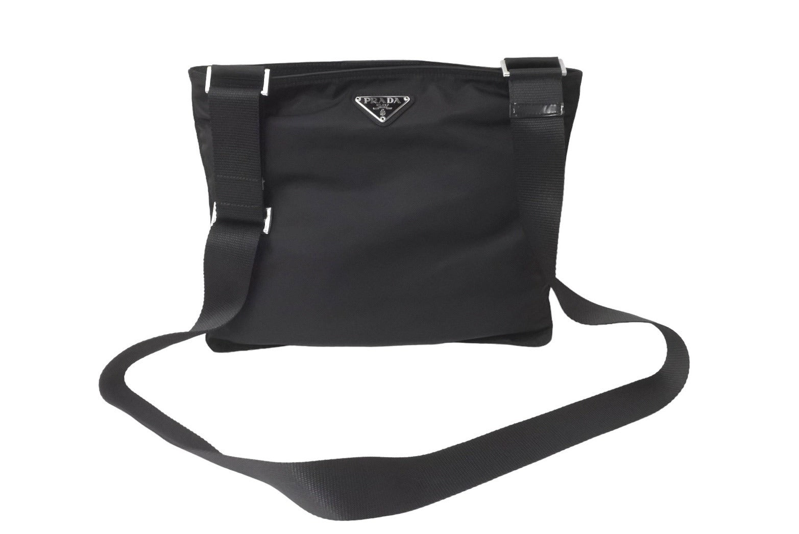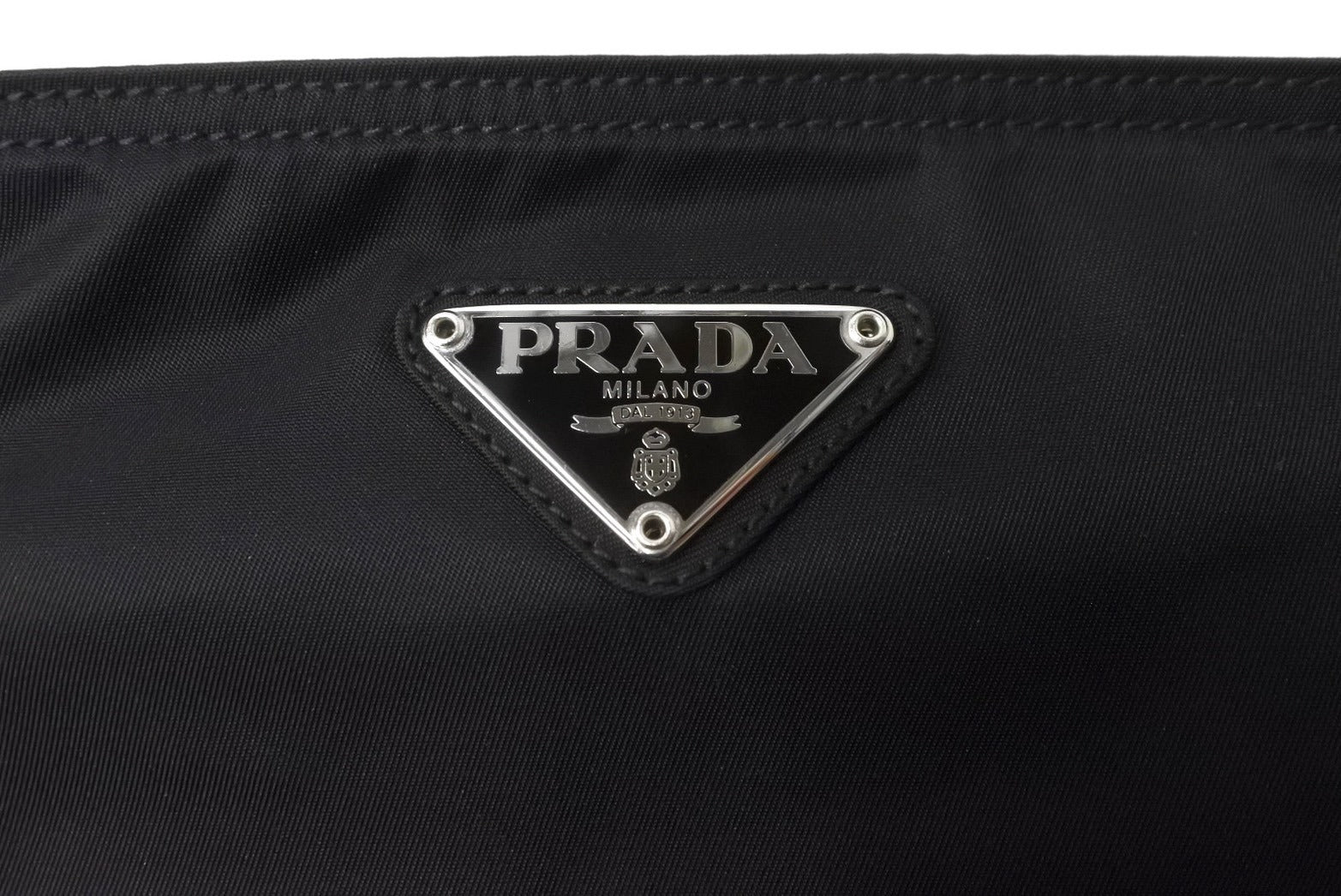 PRADA プラダ ナイロン ショルダーバッグ ブラック トライアングルロゴ レザー 黒 鞄 斜め掛け シルバー金具 美品 中古 64081