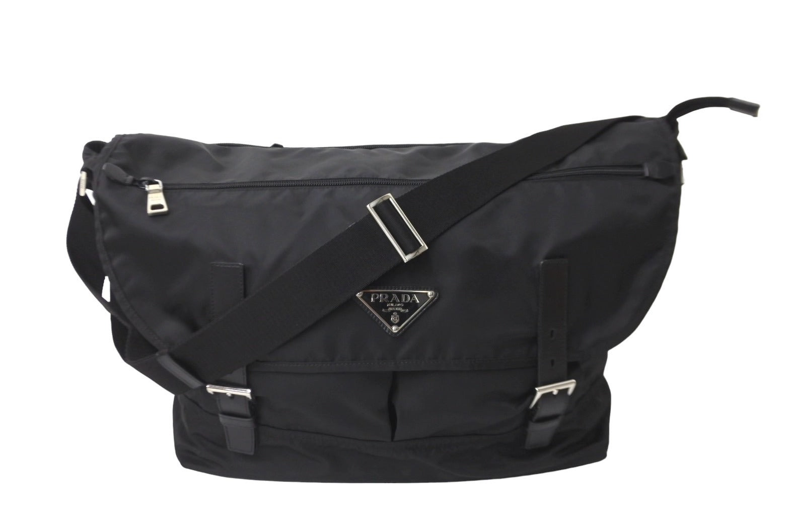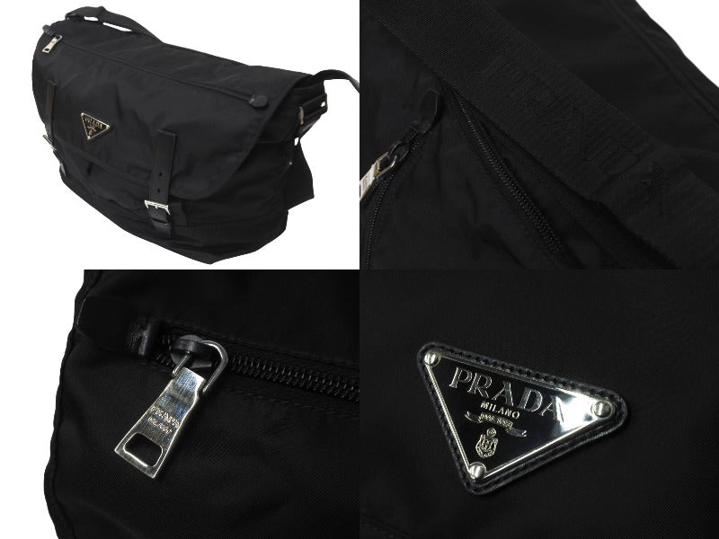 PRADA プラダ メッセンジャーバッグ ショルダー バック BT0696 ナイロン ブラック NERO シルバー金具 美品 中古 64094