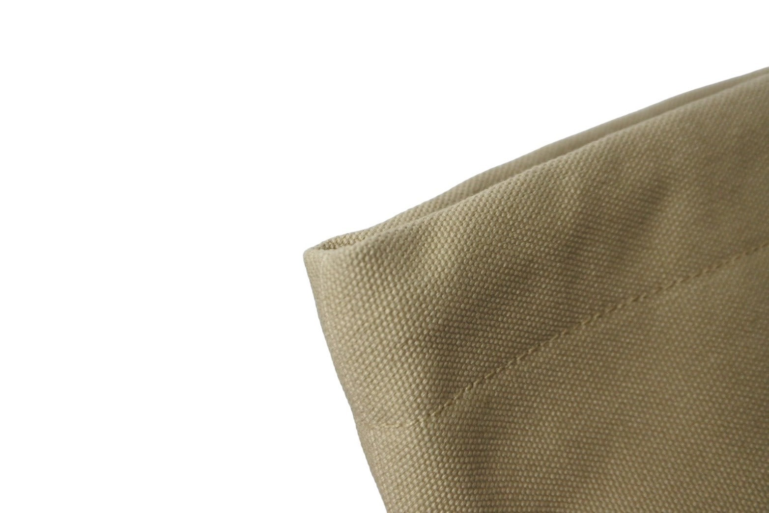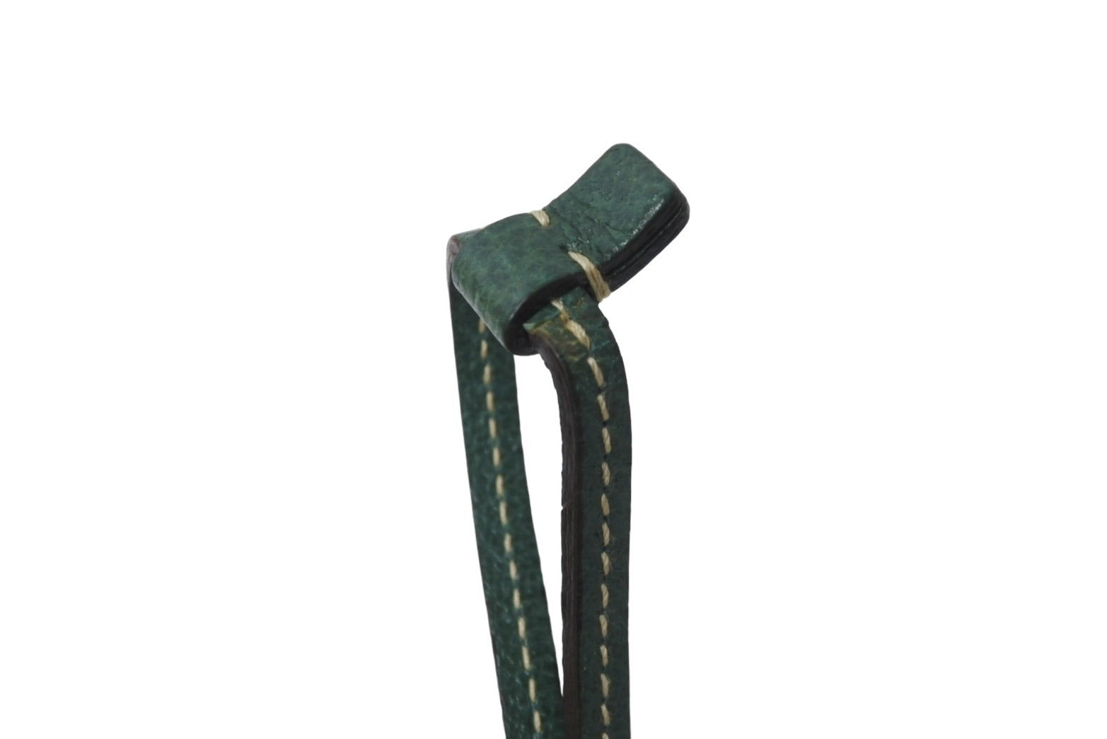 表面端、持ち手レザー部分に僅かな汚れあり。両面僅かにほつれあり。