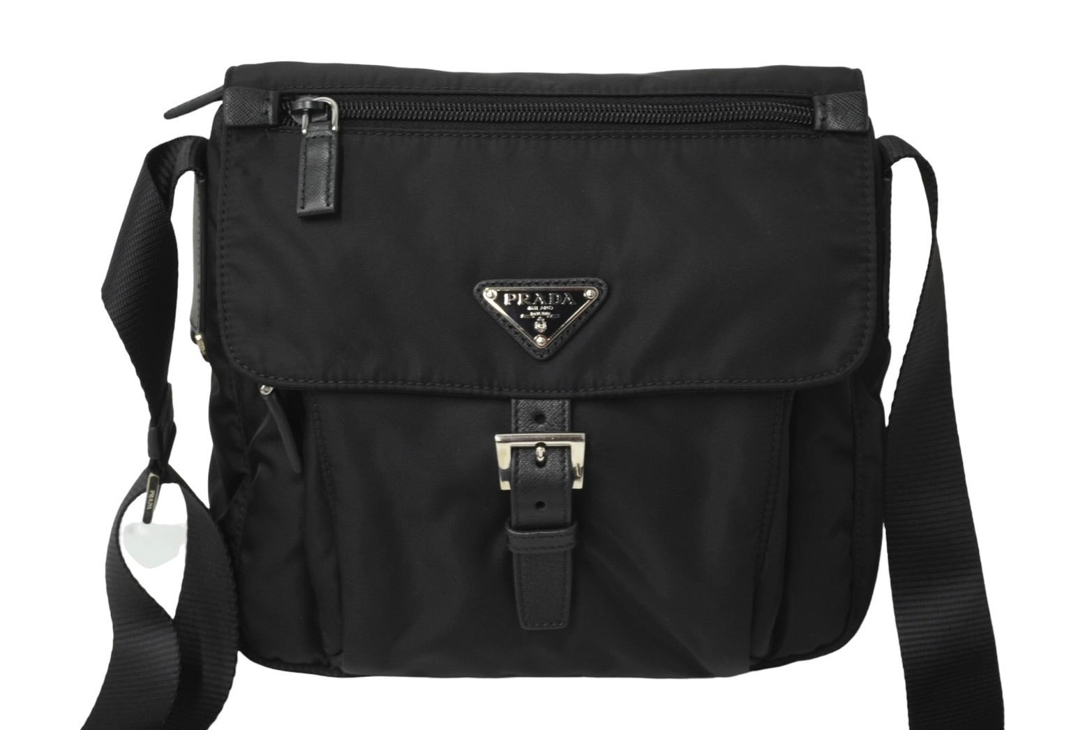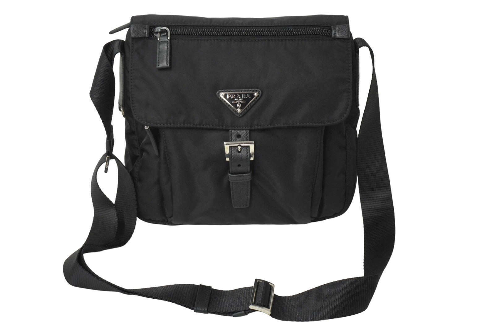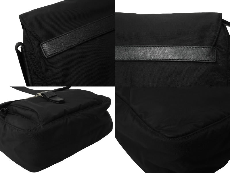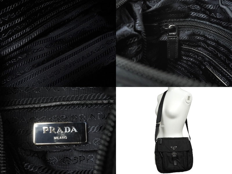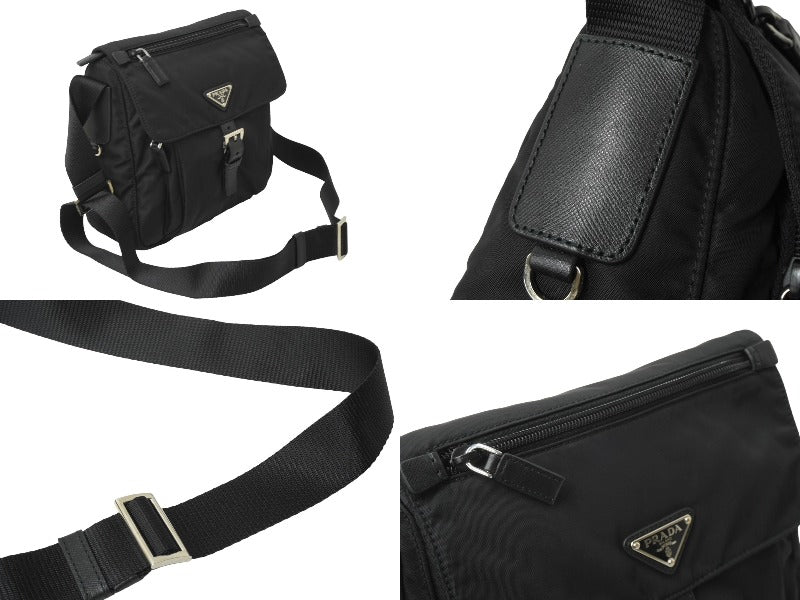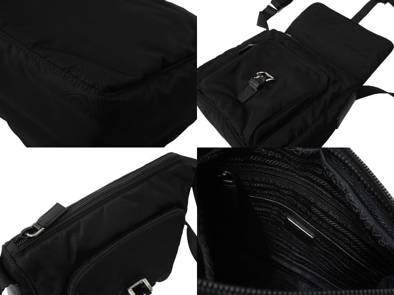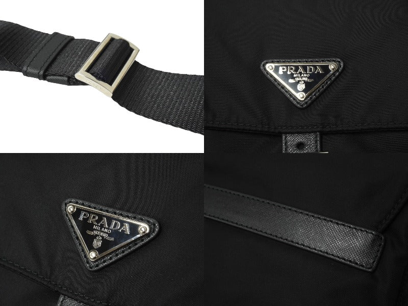 極美品 PRADA プラダ クロスショルダーバッグ BT8994 三角ロゴプレート ナイロン ブラック シルバー金具 中古 64770