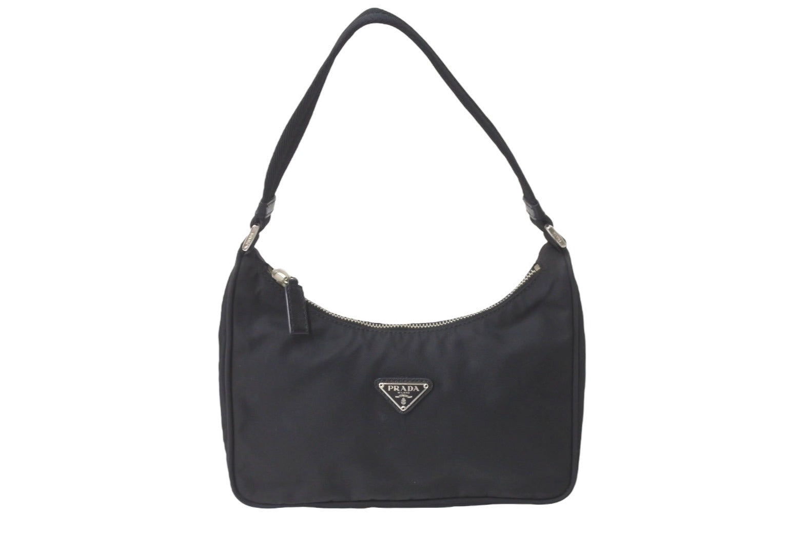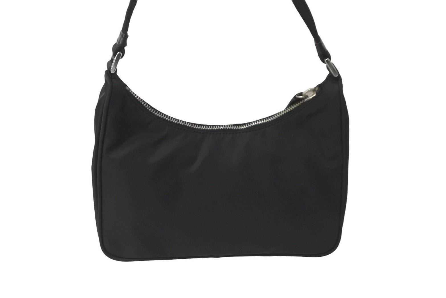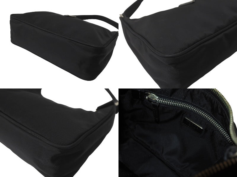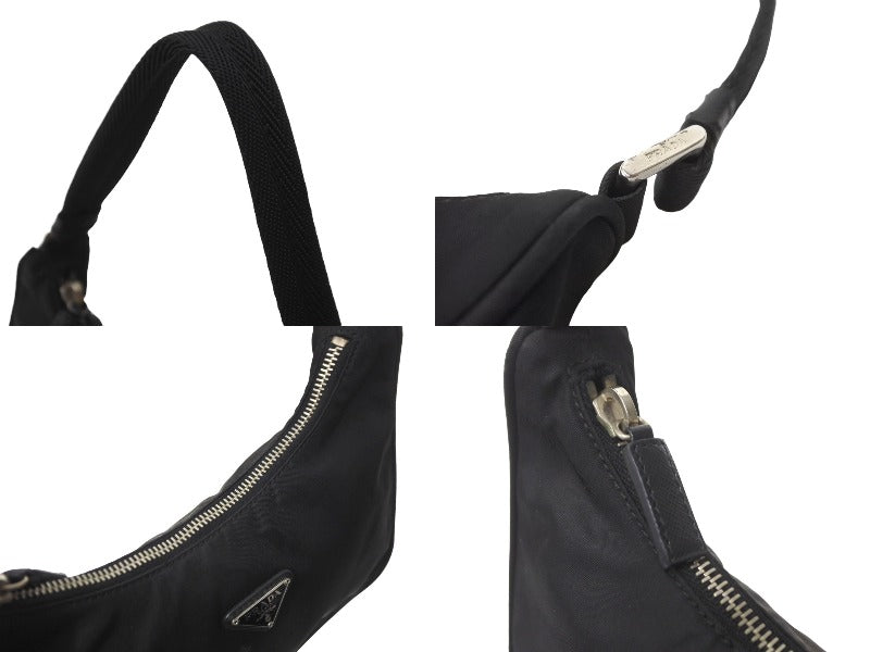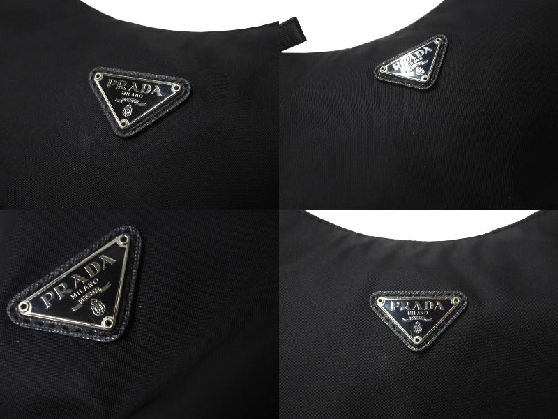 PRADA プラダ ハンドバッグ ホーボー MV515 トライアングルロゴ ブラック ナイロン シルバー金具 美品 中古 64781