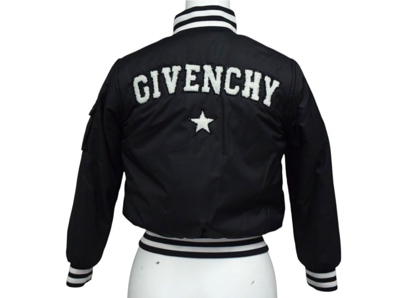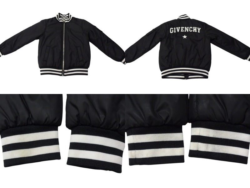 GIVENCHY ジバンシー キッズ 子供服 ジャケット ブルゾン H16034 ナイロン ブラック ホワイト シルバー金具 サイズ8 美品 中古 4c075748