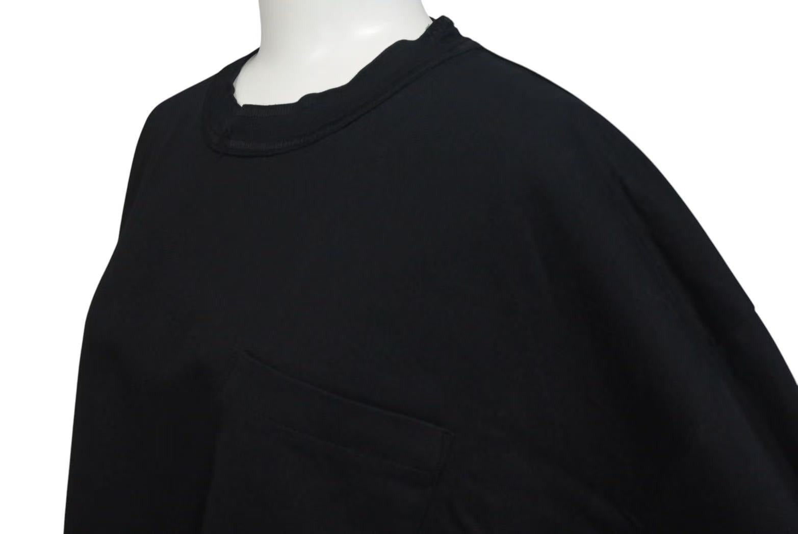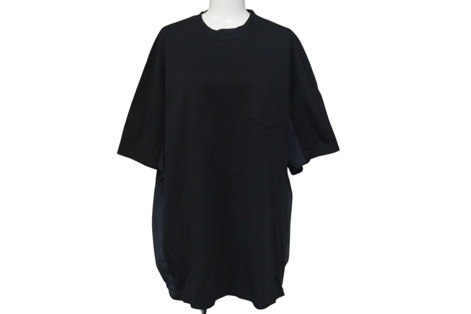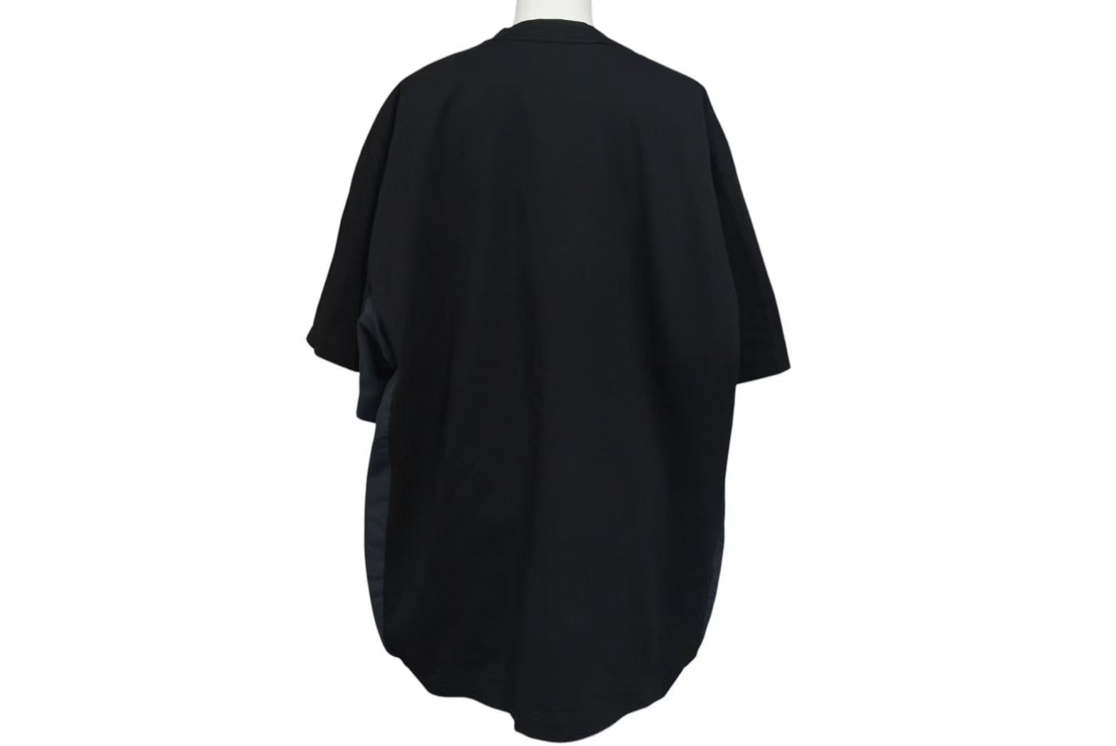 Sacai サカイ 半袖Tシャツ リップストップパネル Tシャツ ブラック コットン ポリエステル 3 24-03473M 美品 中古 4c074573