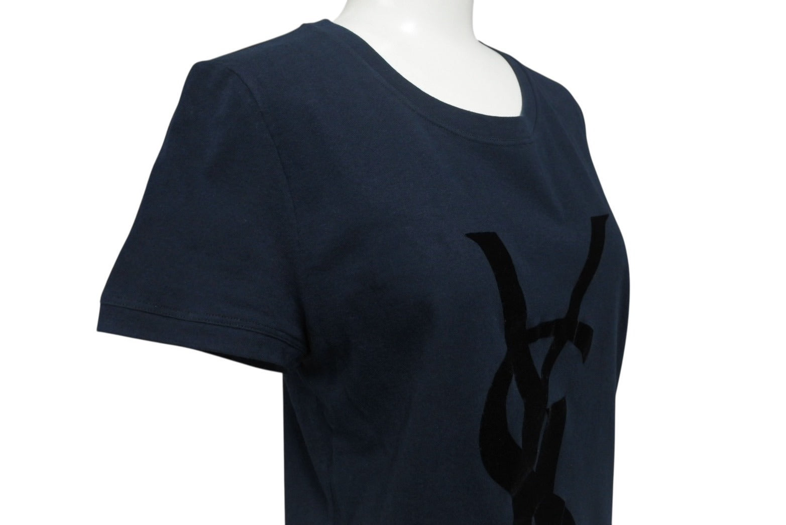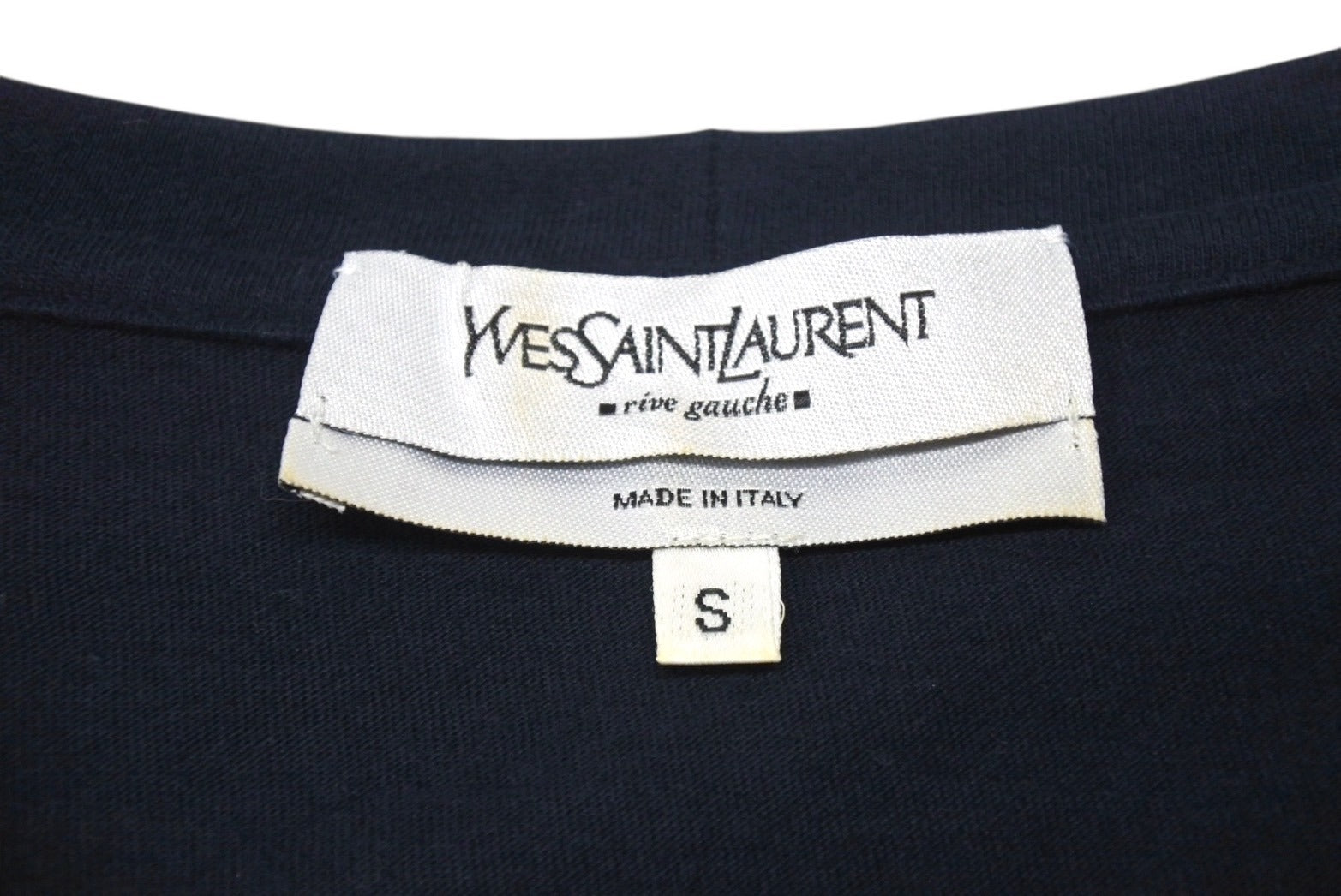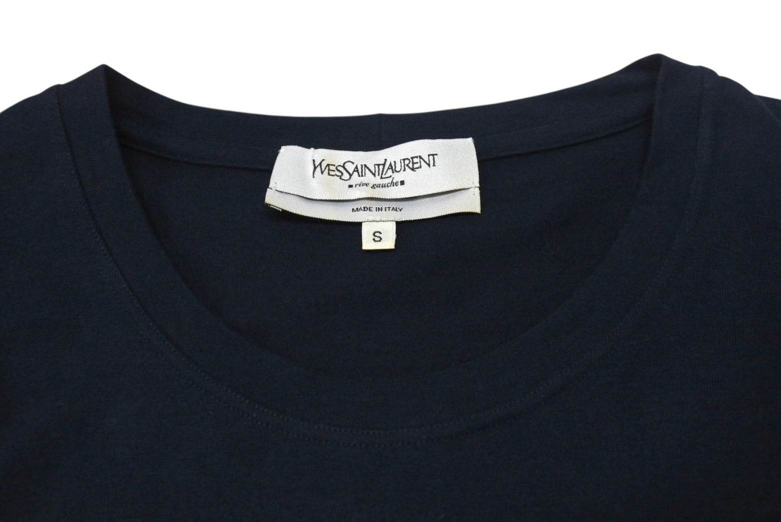 YVES SAINT LAURENT イヴサンローラン 半袖Tシャツ カサンドラロゴ ネイビー ブラック コットン サイズS 美品 中古 4b001946