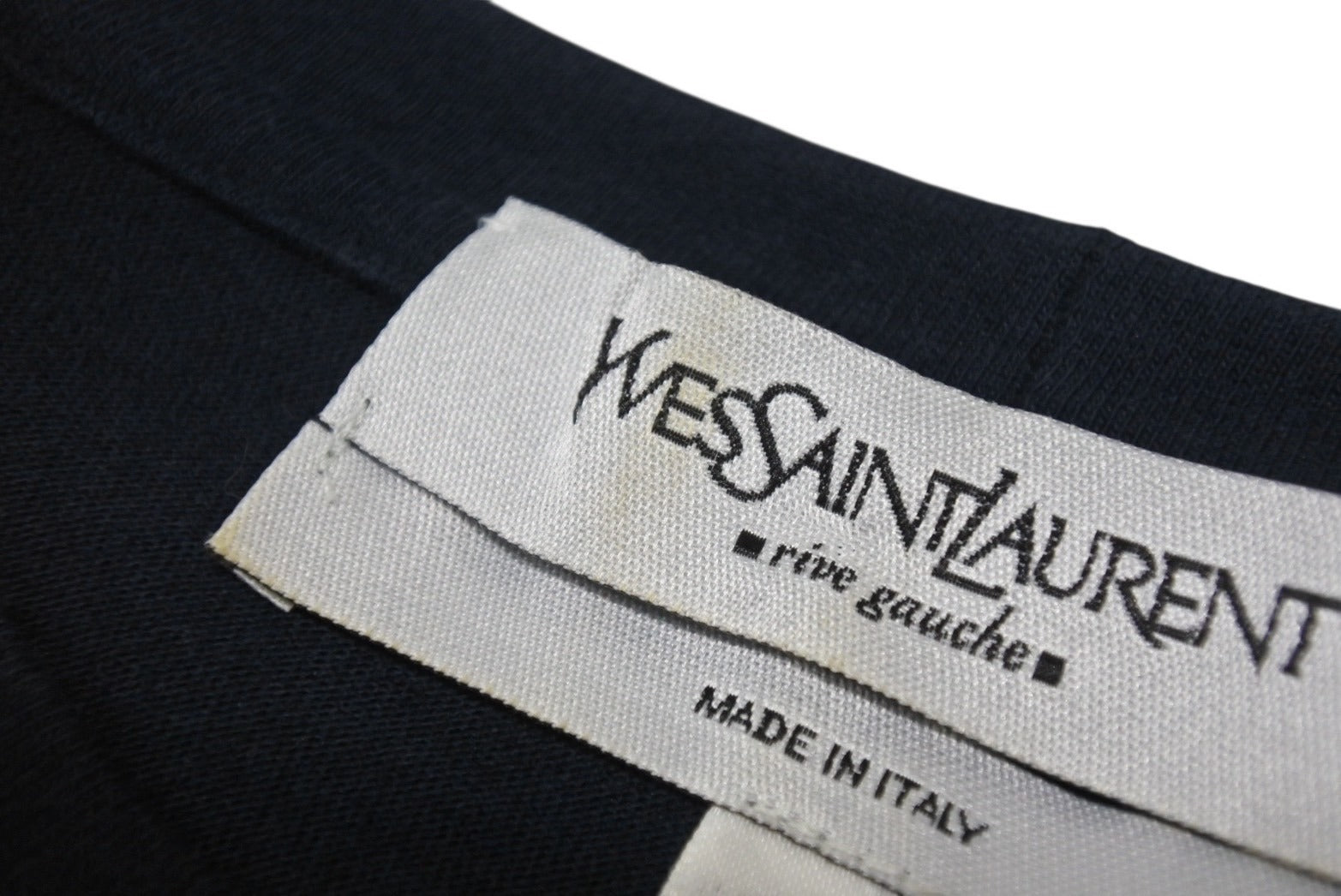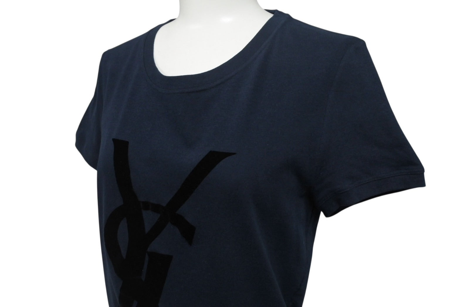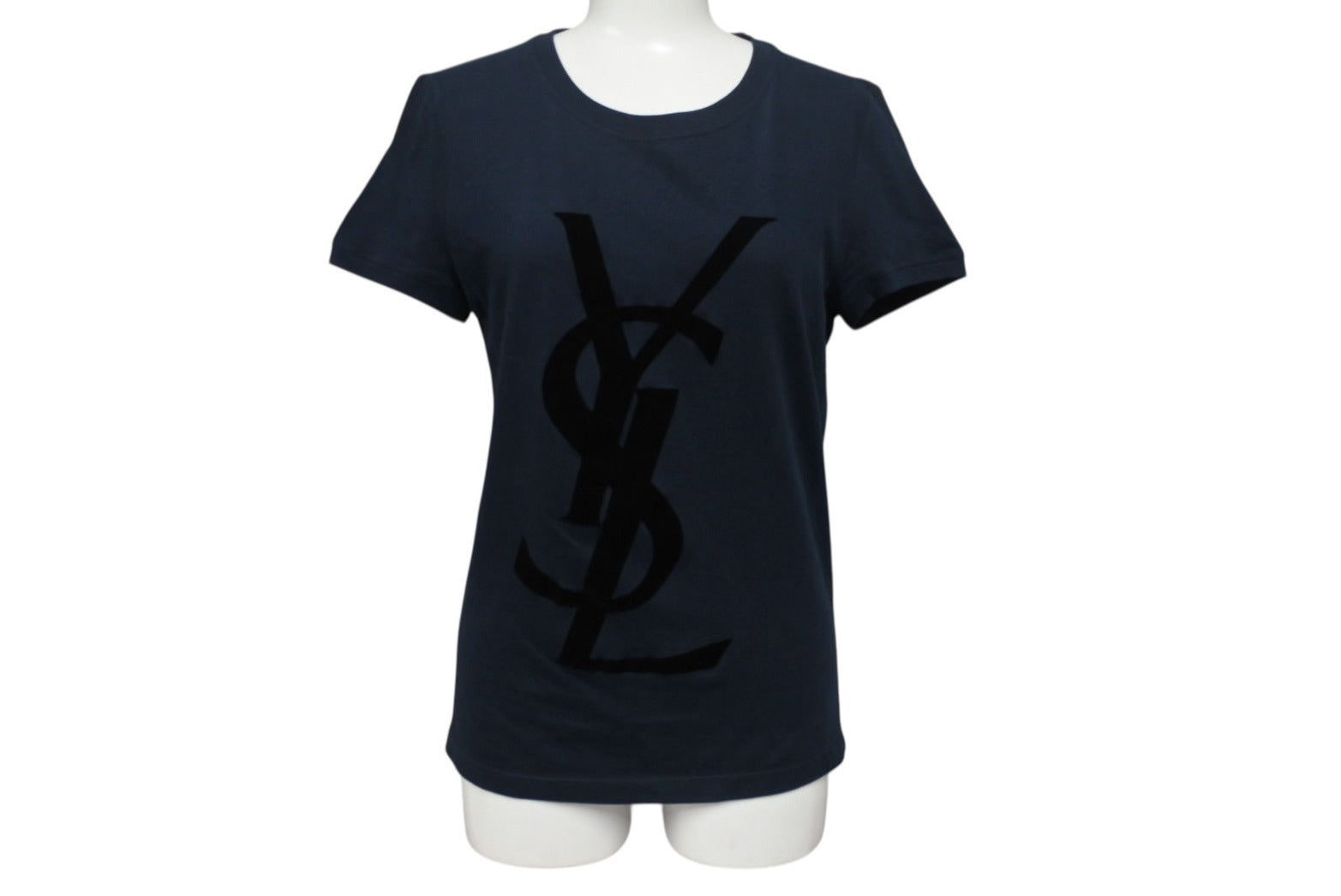 YVES SAINT LAURENT イヴサンローラン 半袖Tシャツ カサンドラロゴ ネイビー ブラック コットン サイズS 美品 中古 4b001946