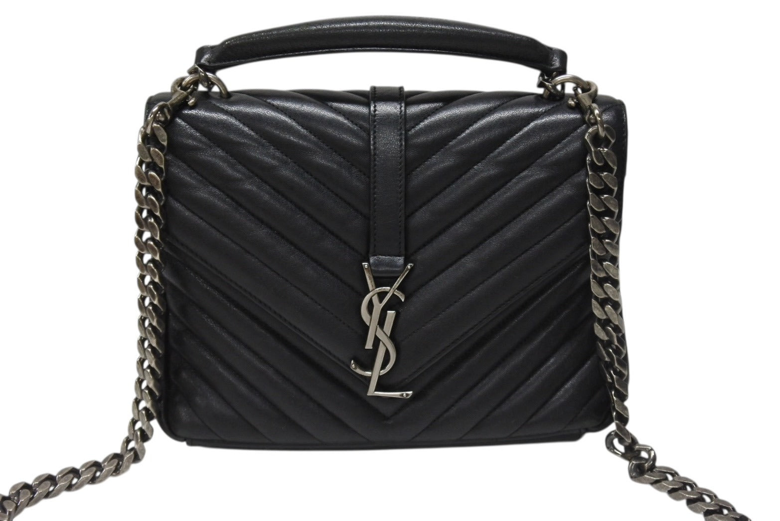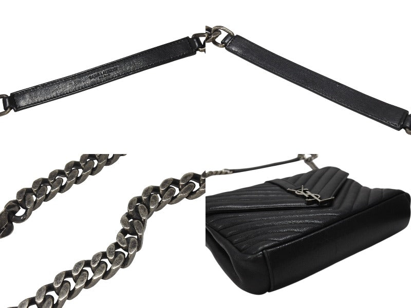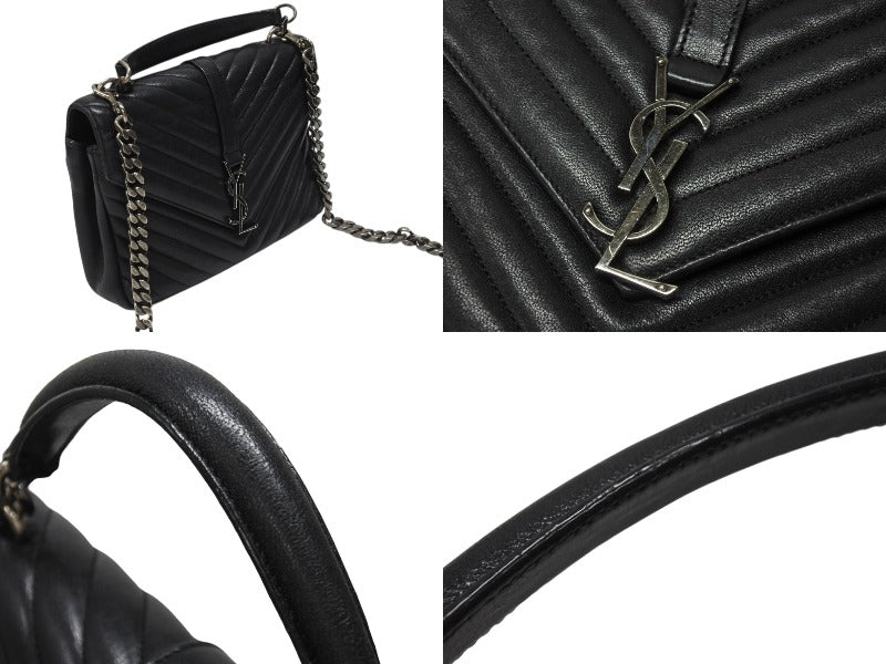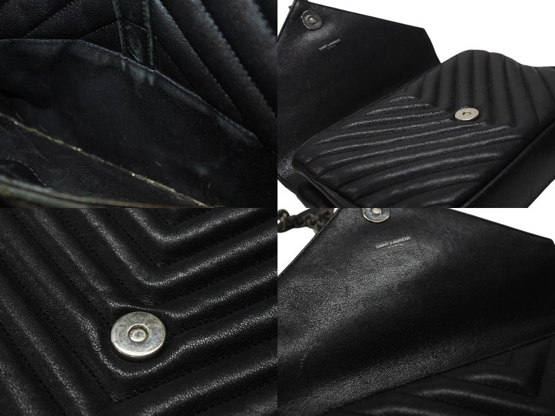 YVES SAINT LAURENT イヴサンローラン サッチェル キルティング チェーンショルダーバッグ 428056 ブラック メタルブラック金具 美品 中古 4b004142