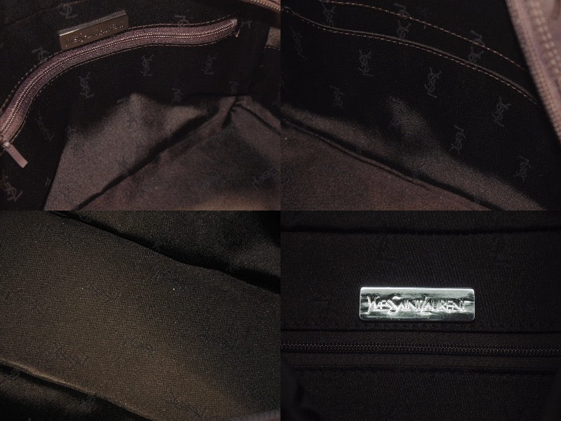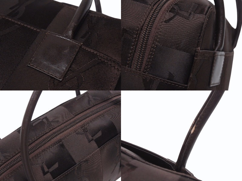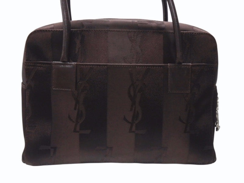 YVES SAINT LAURENT イヴサンローラン オールド ハンドバッグ 総ロゴ柄 ナイロン ブラック ブラウン シルバー金具 美品 中古 4b005132