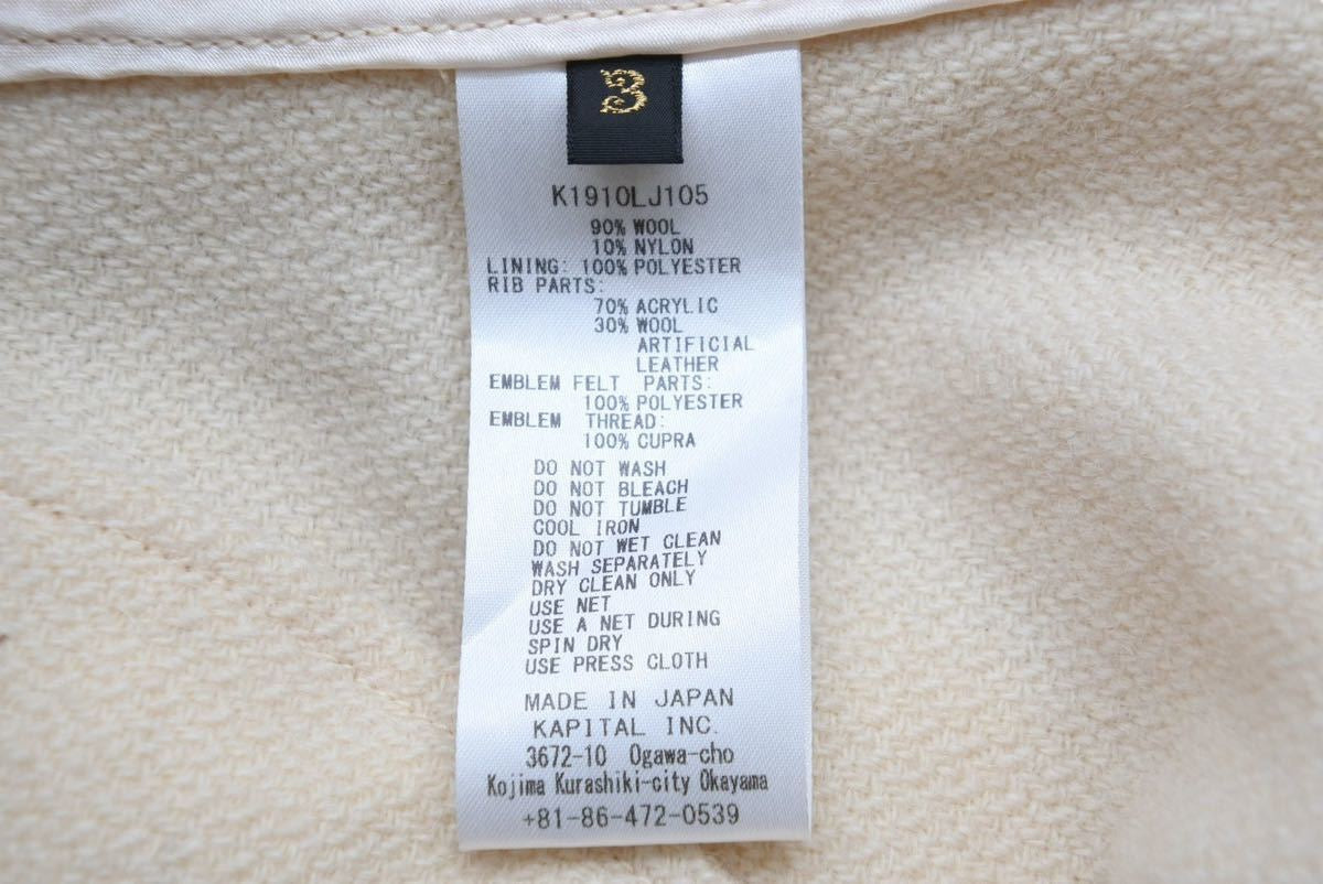 KAPITAL キャピタル バーシティ ジャケット ベージュ アウター アクリル ウール レザー K1910LJ105 サイズ3 美品 中古 47187