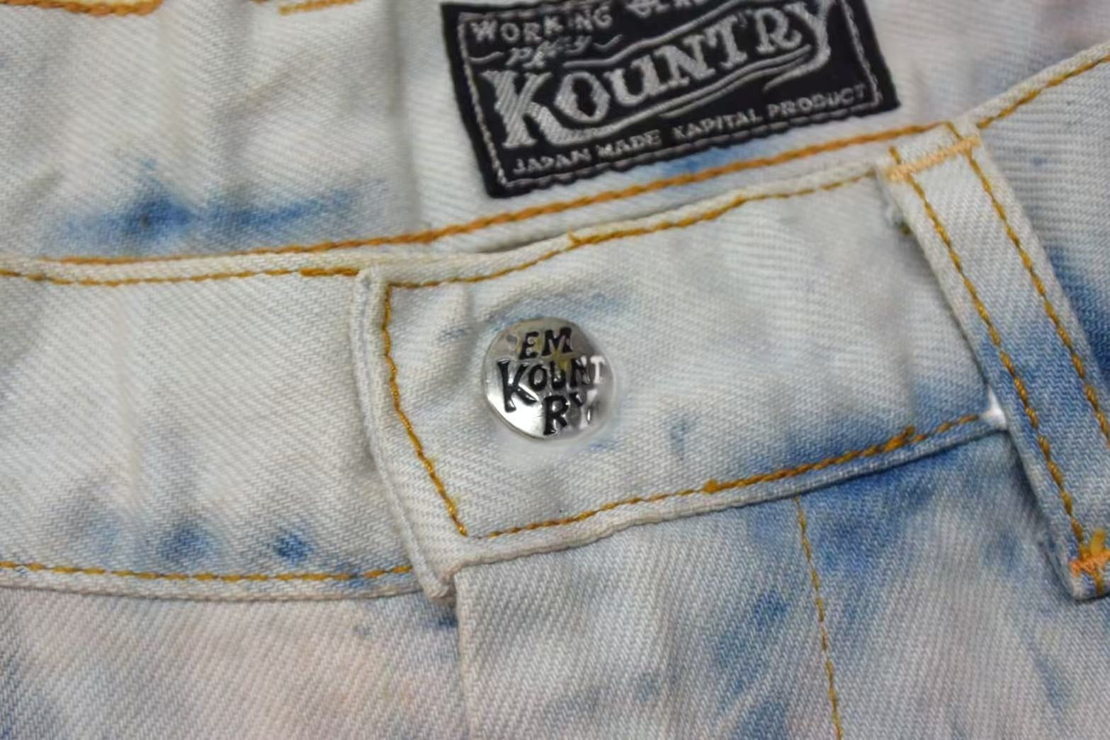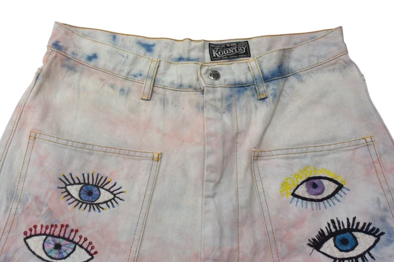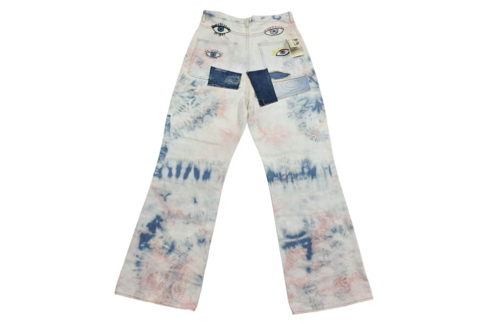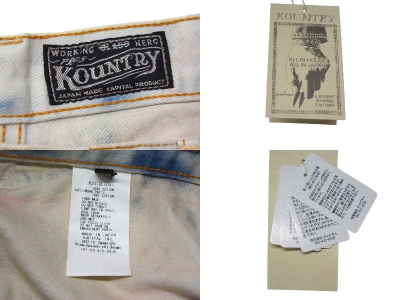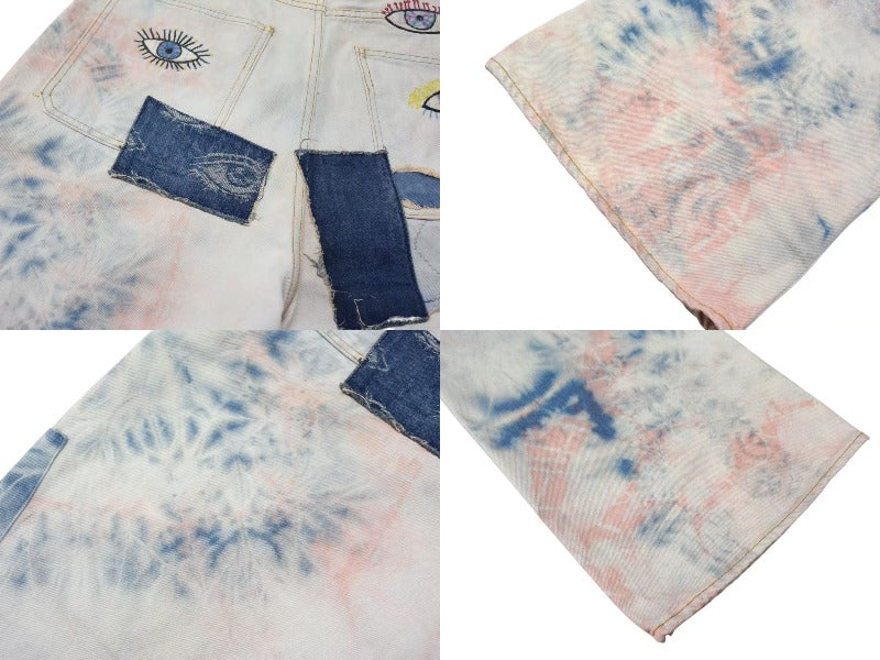新品未使用 KAPITAL キャピタル 14ozデニム タイダイバギーフレアパンツ リメイク加工 インディゴ ピンク コットン サイズ34 中古 4b000694