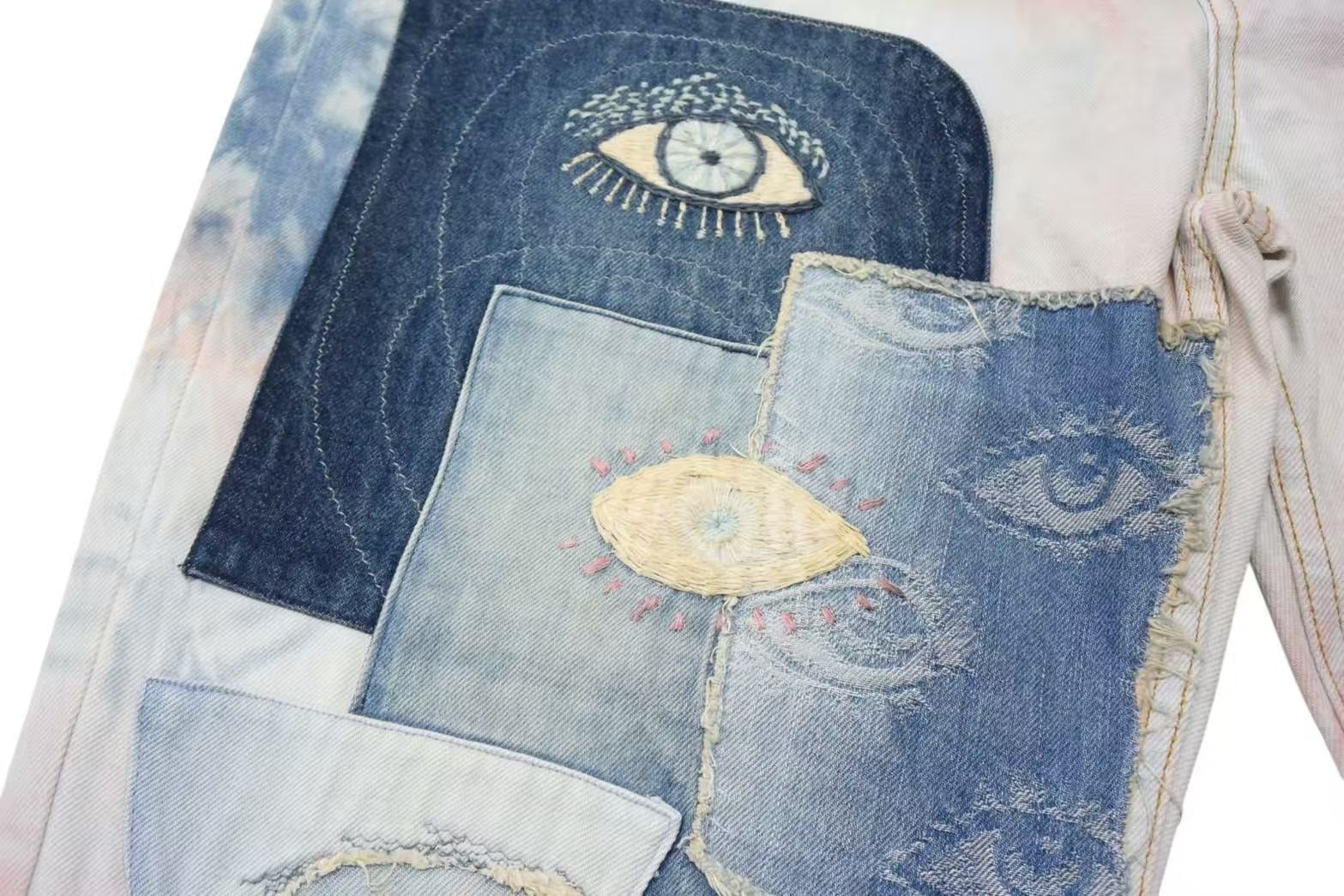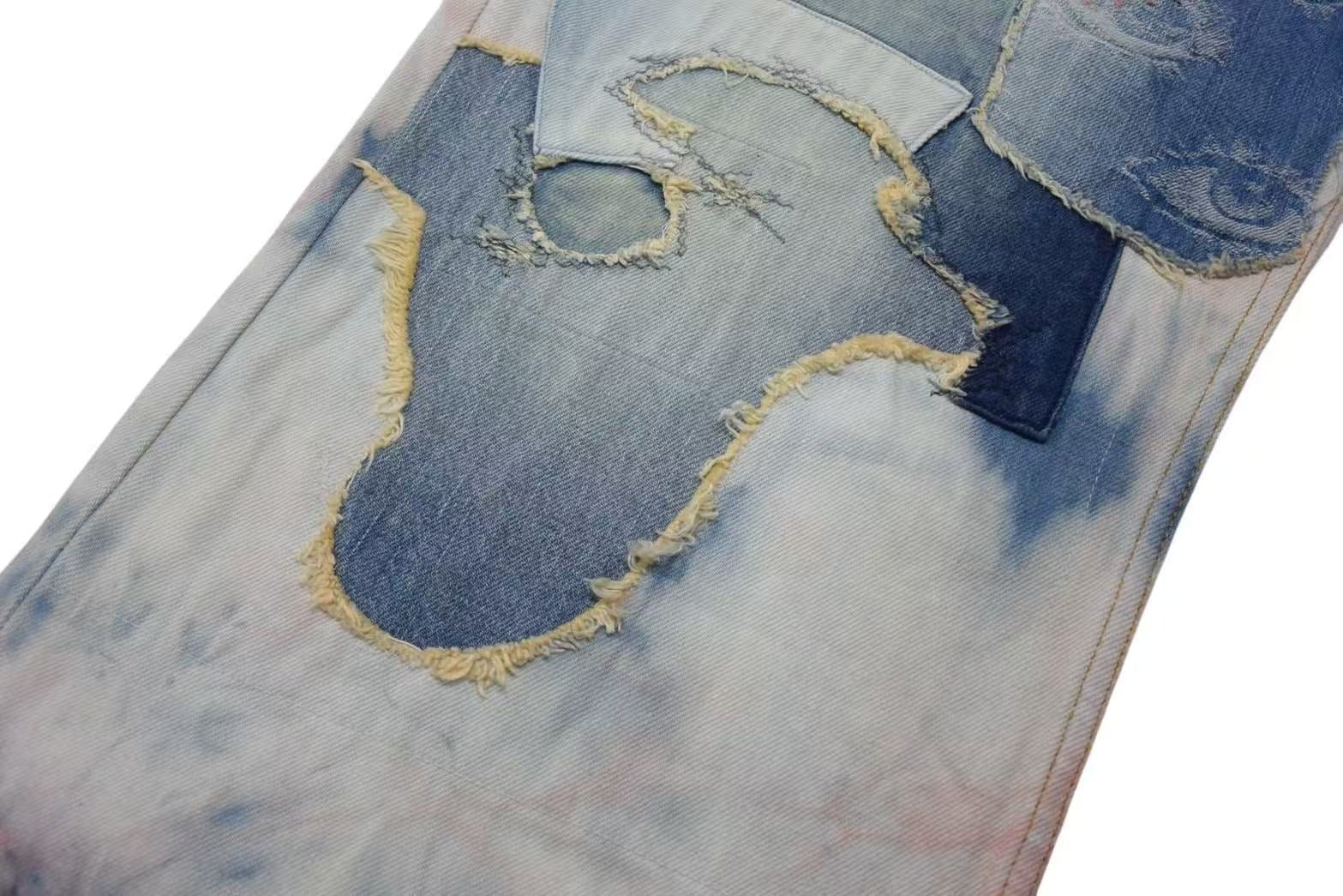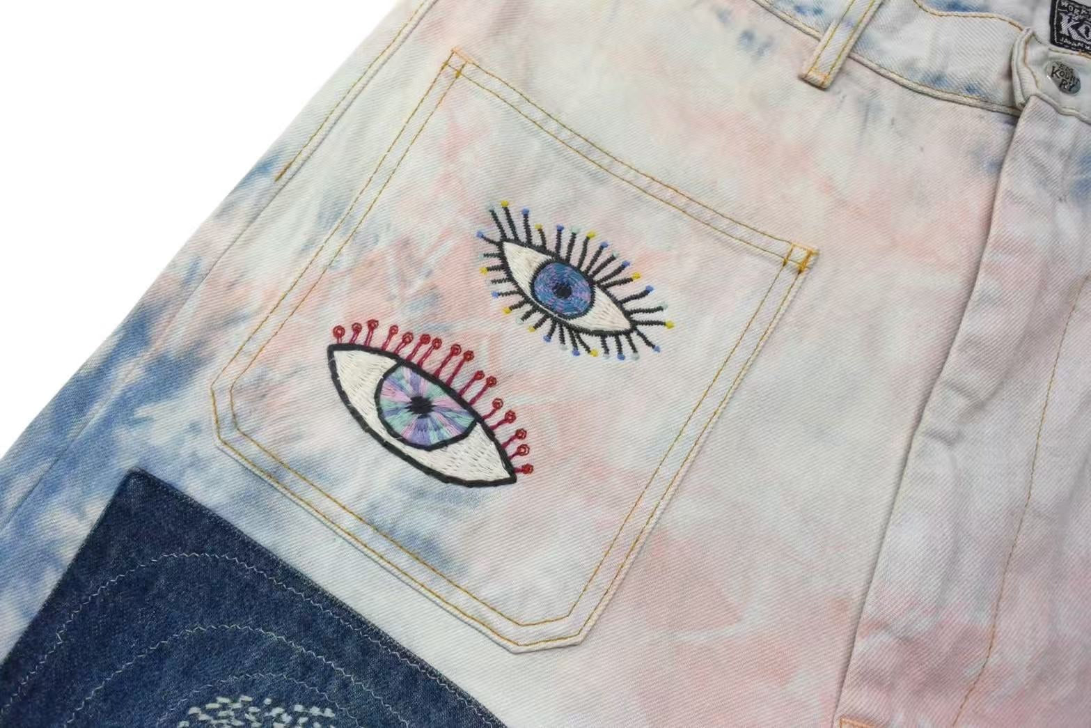 インディゴとピンクが印象的なタイダイデニムパンツです。