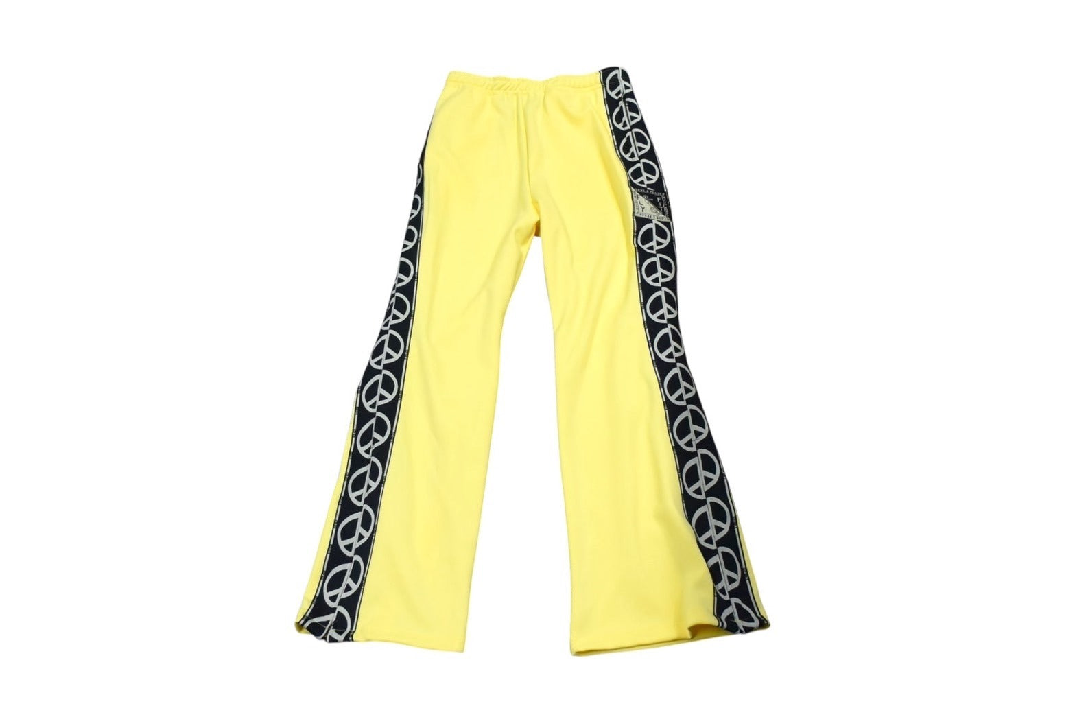 説明鏡合わせになった「D」の文字でデザインされた、ピースマーク柄のテープを使用したトラックパンツ。滑らかなスムース組織のジャージー素材を使用しています。ゆったりとしたバギーシルエットになっています。ウエスト周りはインタックを入れ、その他ゴムとドローコードにて調節可能となっています。