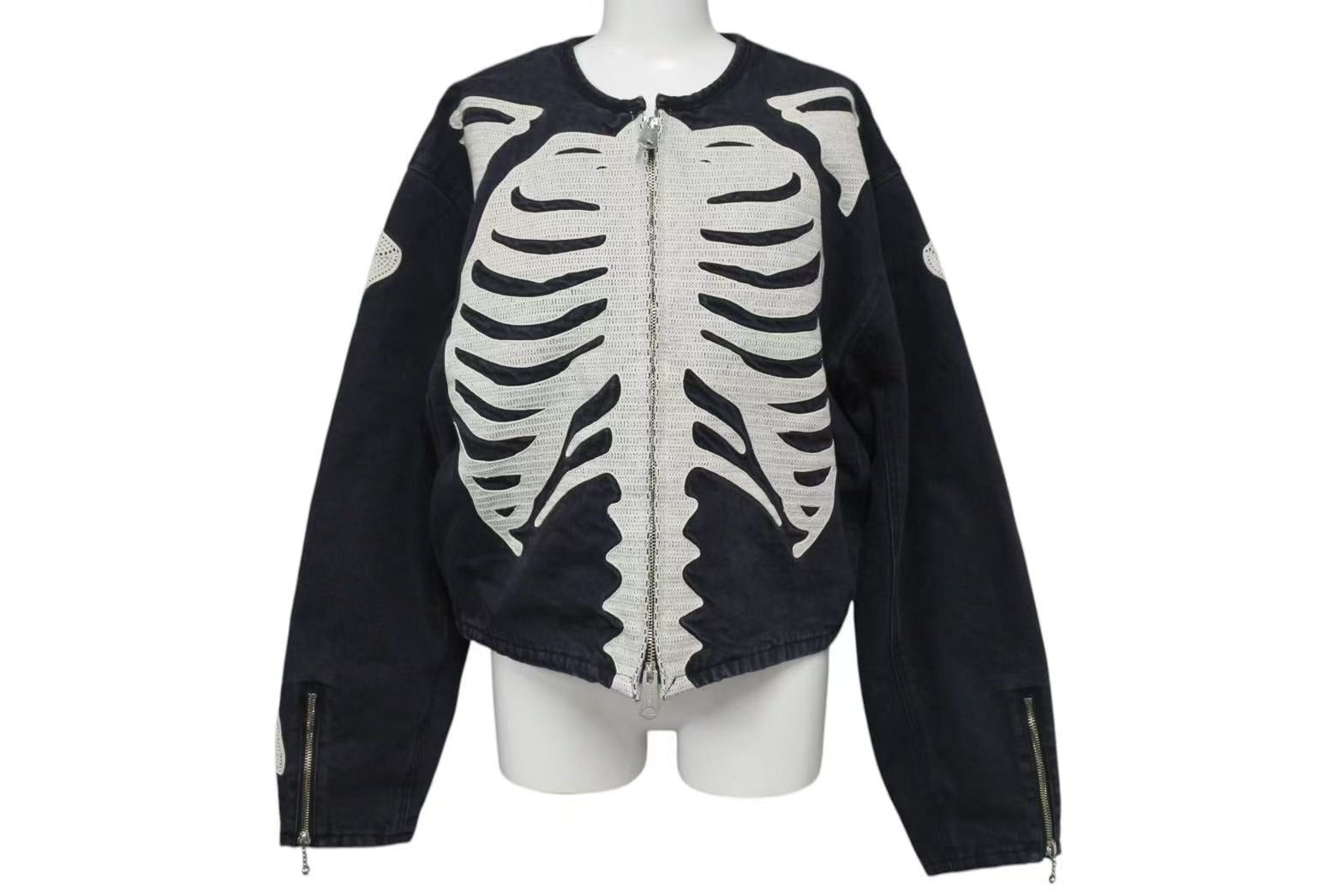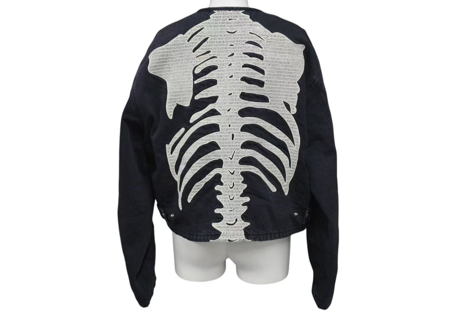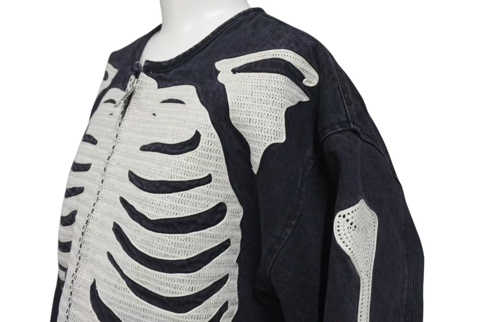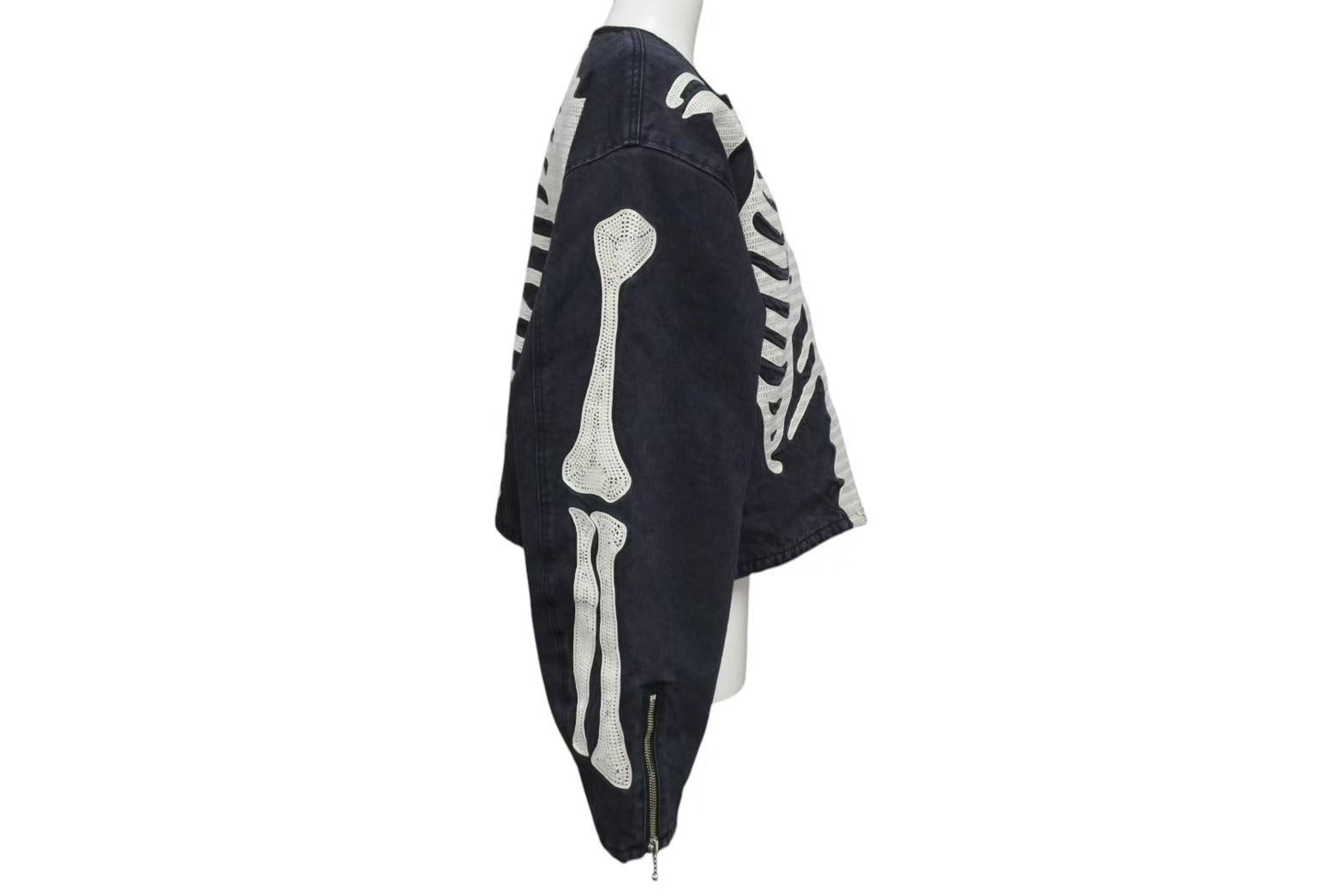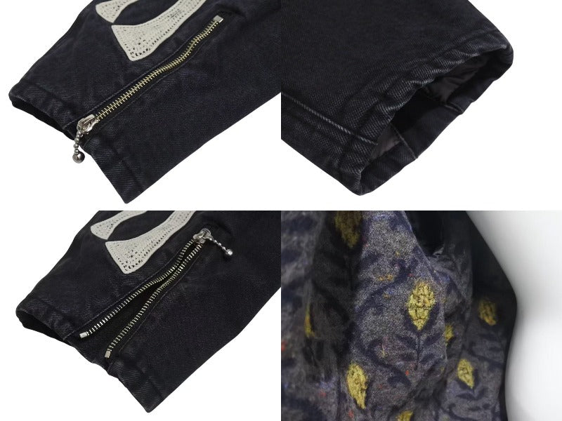 新品未使用 KAPITAL キャピタル 14oz モトクロスボーンジャケット KR2402LJ06 ブラック ホワイト シルバー金具 中古 サイズL 4c073449