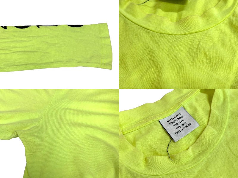 VETEMENTS ヴェトモン 長袖Tシャツ アームロゴプリント クールネック MS16TP23 サイズM 16SS ブラック イエロー 美品 中古 65759