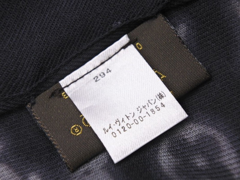 説明ブラック基調にLVロゴやモノグラムパターンがデザインされたお洒落なストールです。