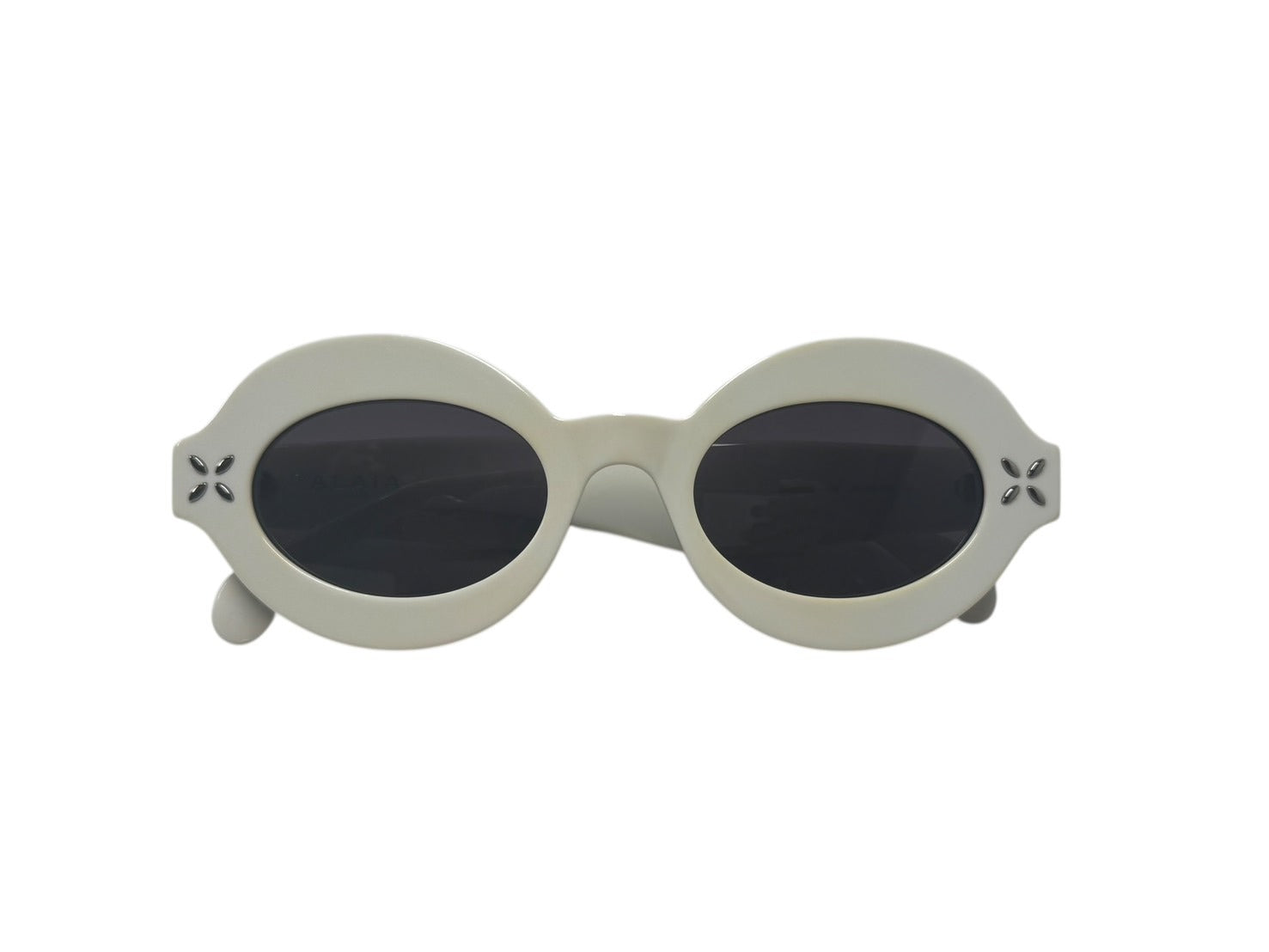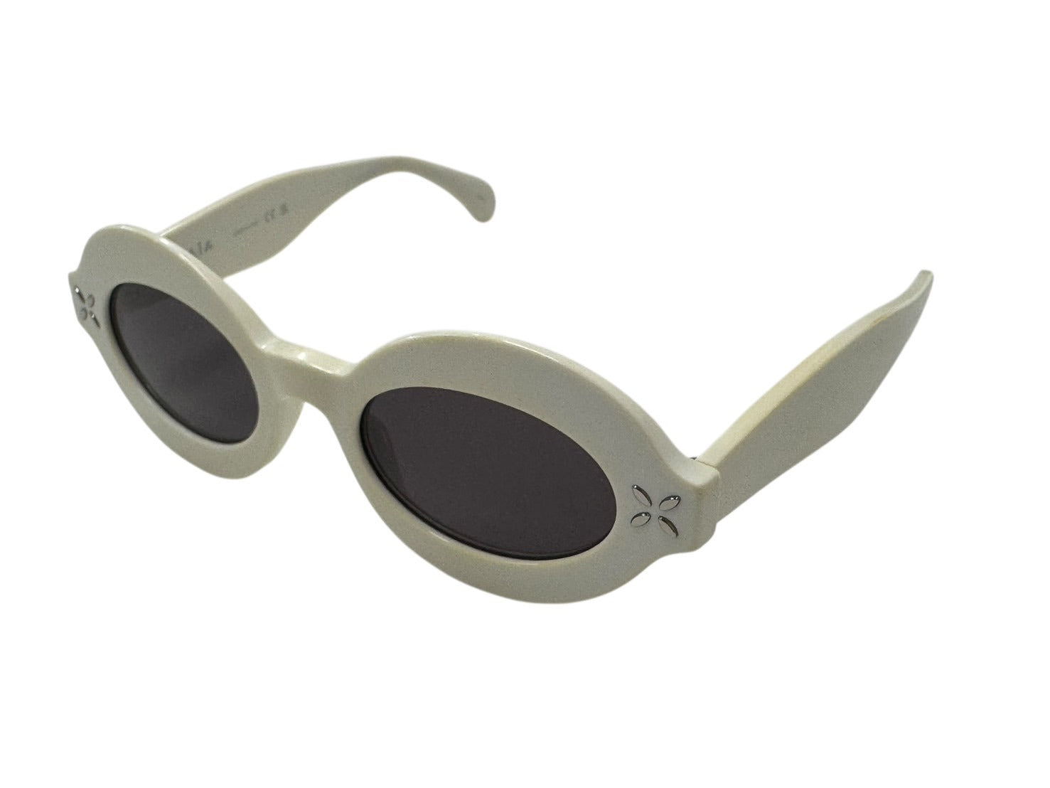 ALAIA アライア オーバル サングラス ホワイト プラスチック アイウェア 小物 49☐22-140 AA0059S シルバー金具 美品 中古 4b002292