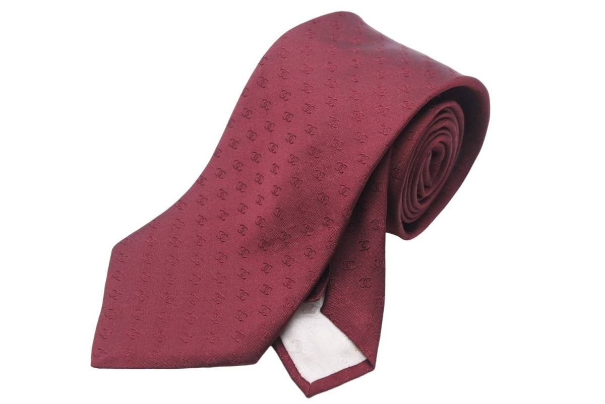 CHANEL シャネル ネクタイ 総柄 ジャガード織 シルク100% ミニココマーク レッド 赤 ネクタイ 中古 48284