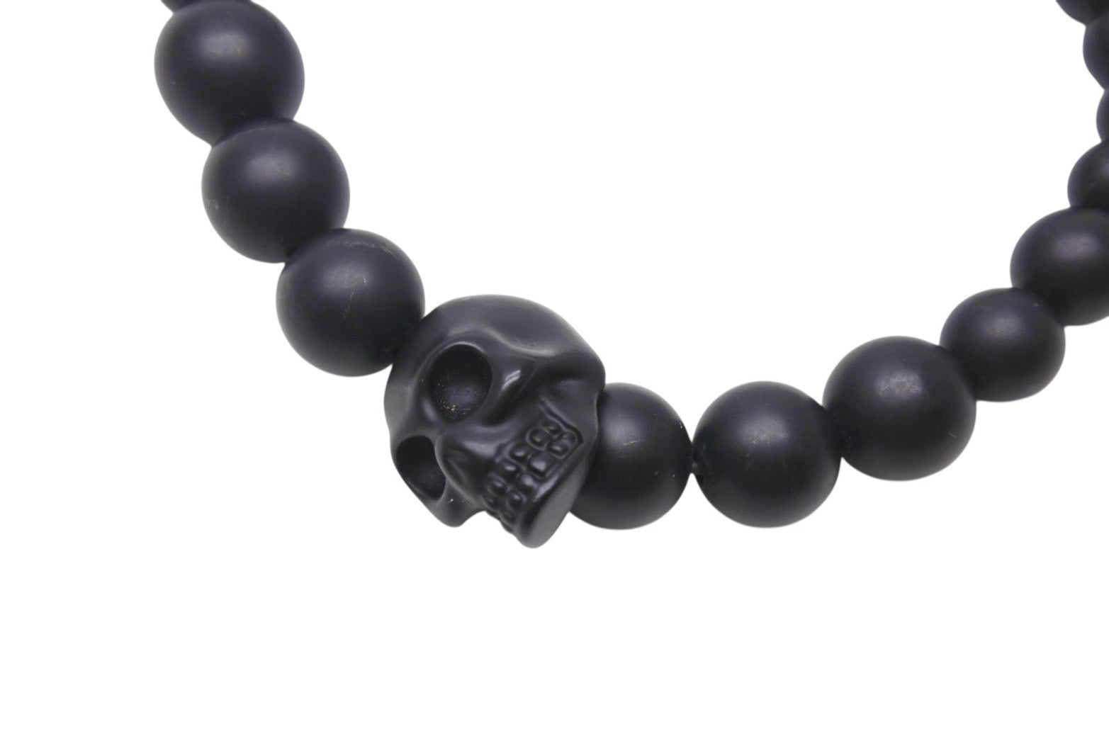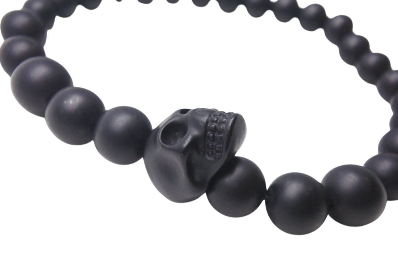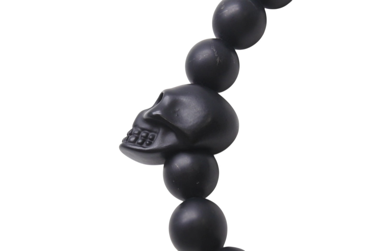 マットブラックの樹脂仕上げした素材のスカルマルチビーズブレスレットです。