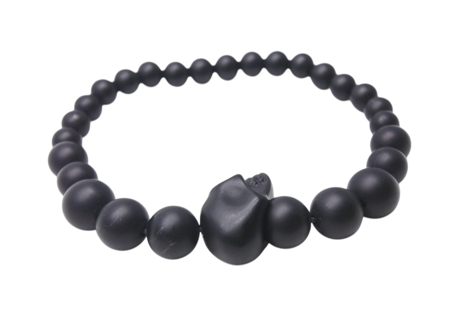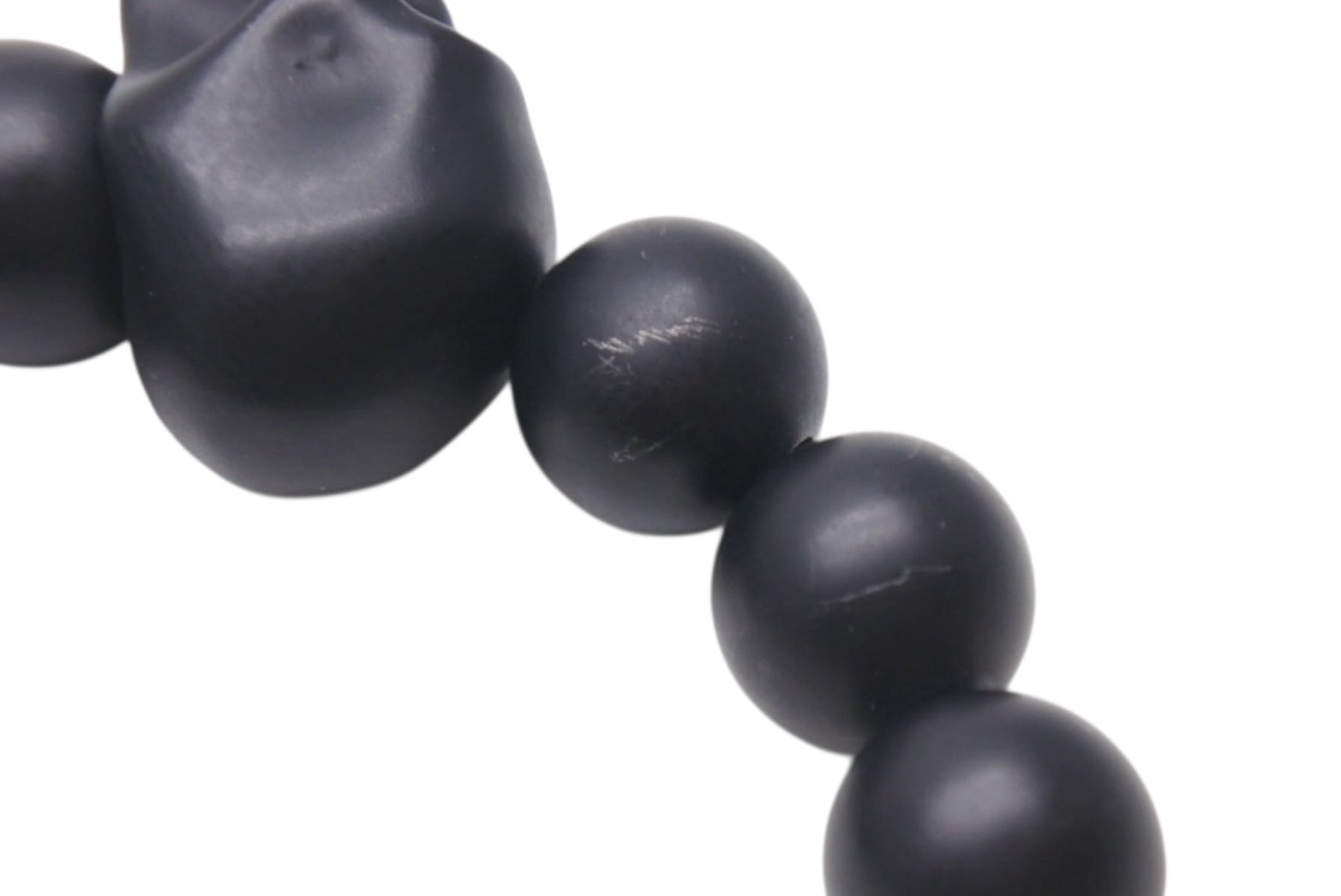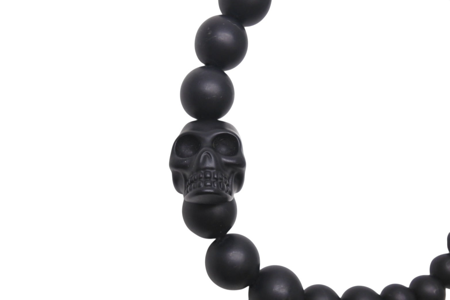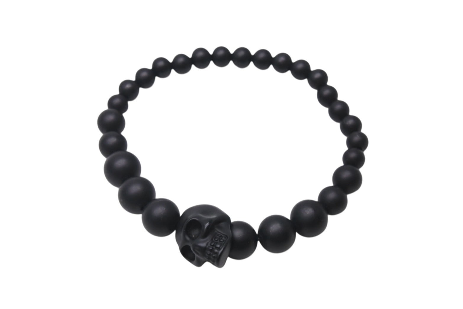 マットブラックの樹脂仕上げした素材のスカルマルチビーズブレスレットです。