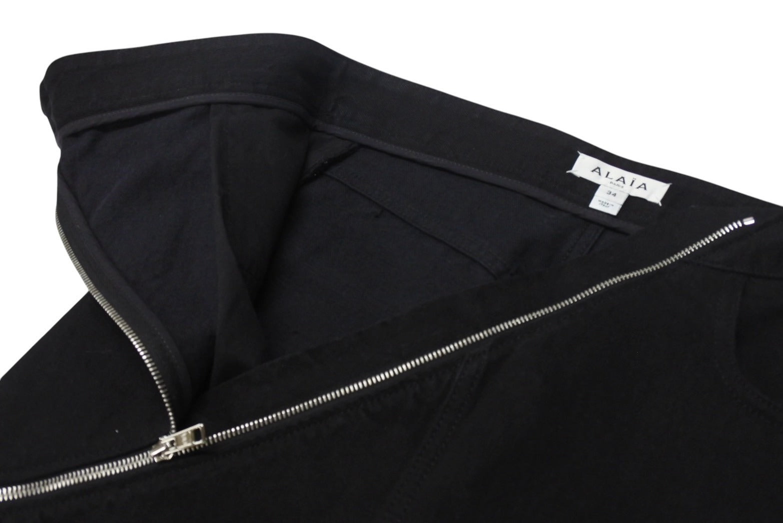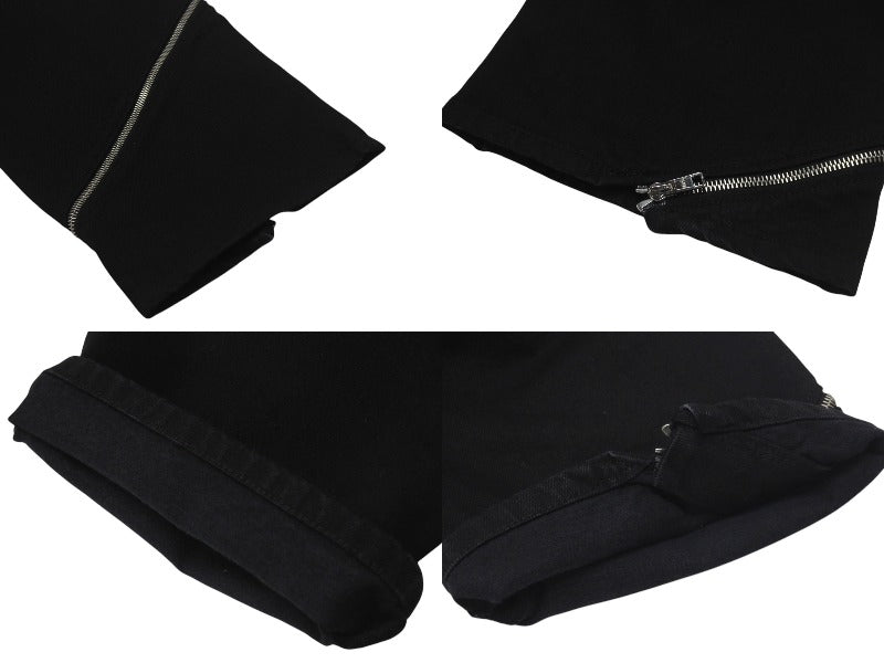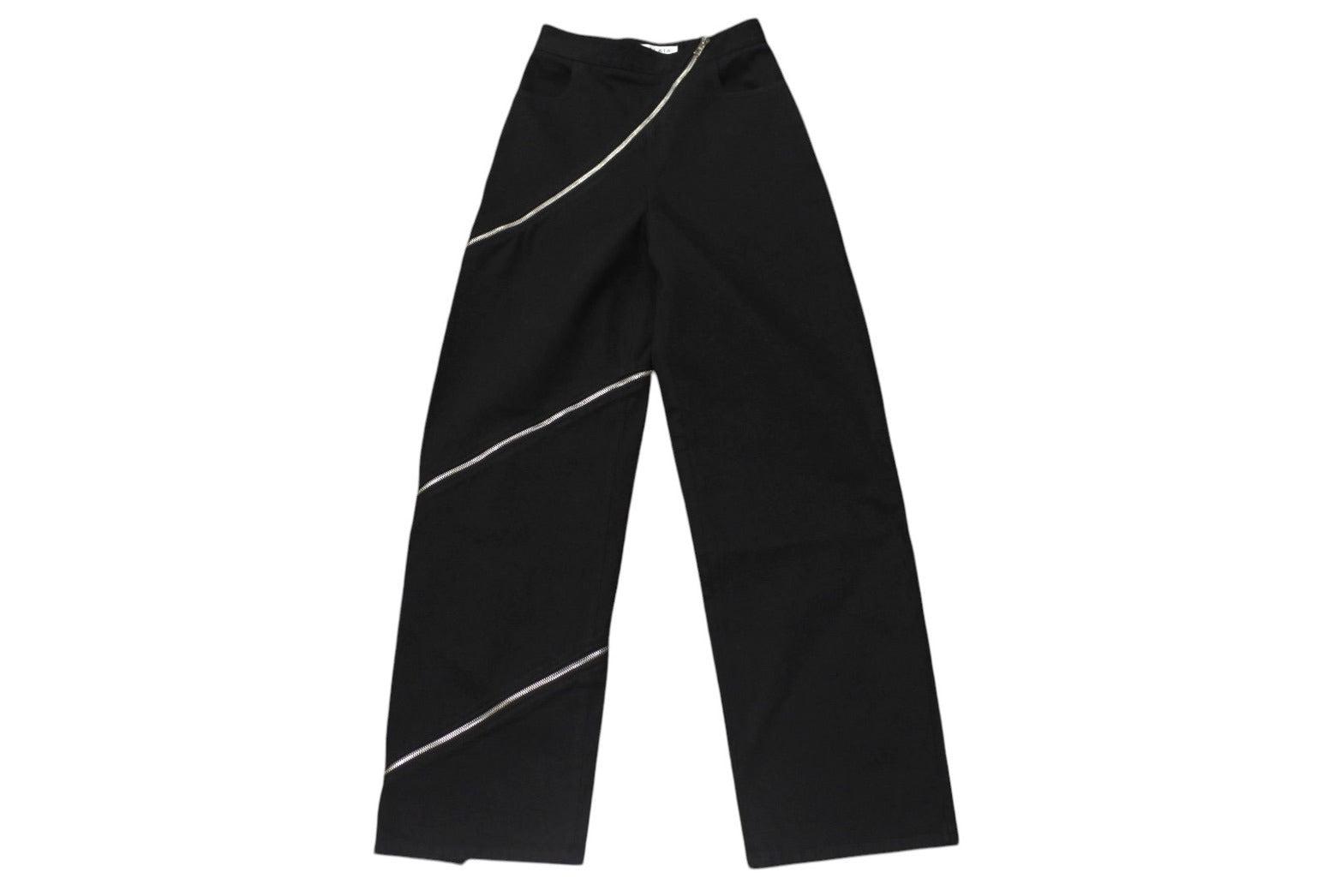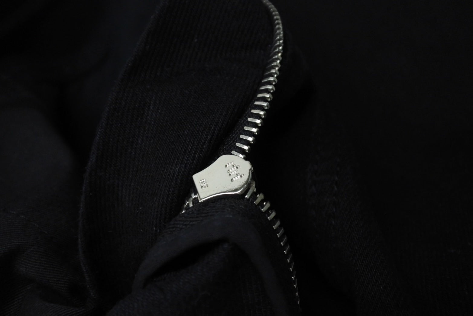 螺旋状のジップデザインが特徴的なデニムパンツです。