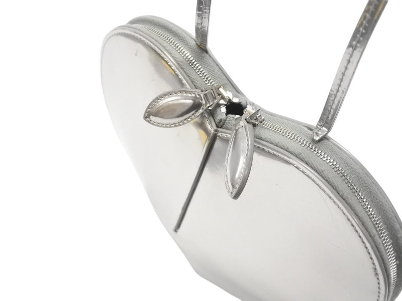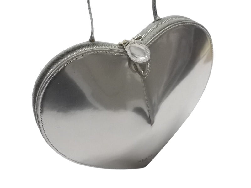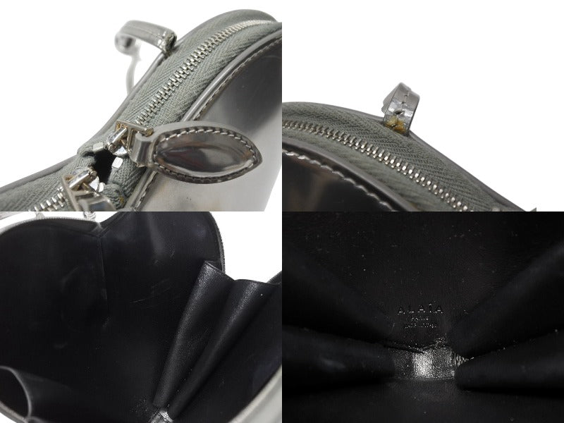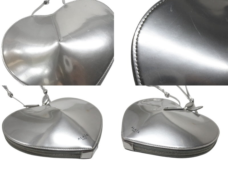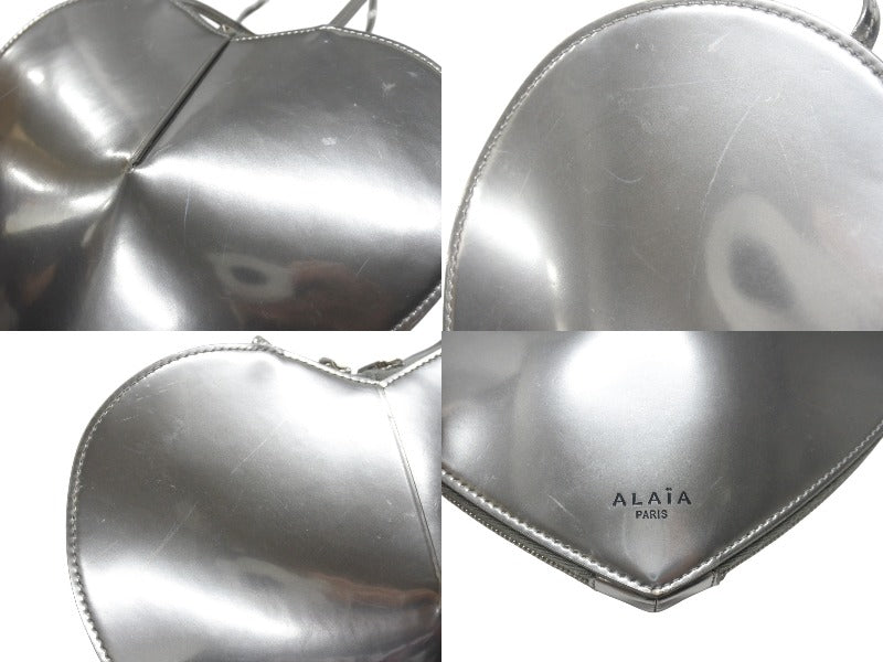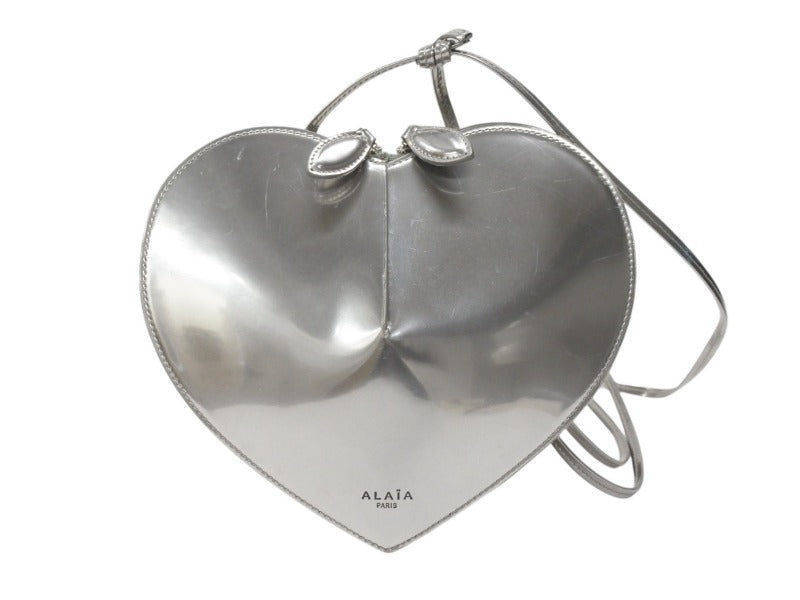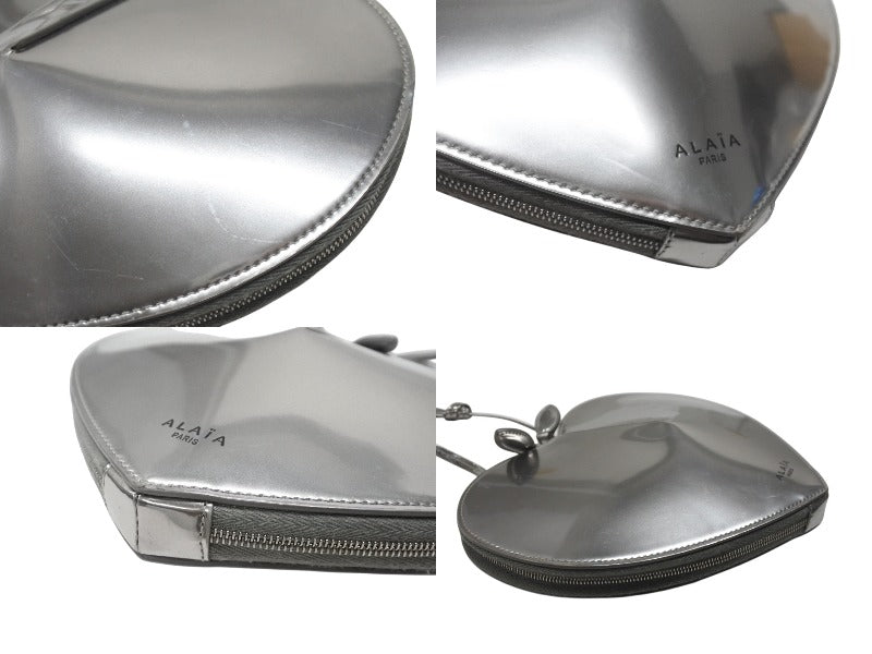 ALAIA アライア ハートシェイプ ロゴディテール ショルダーバッグ ジップポーチ レザー シルバー 美品 中古 4b004799