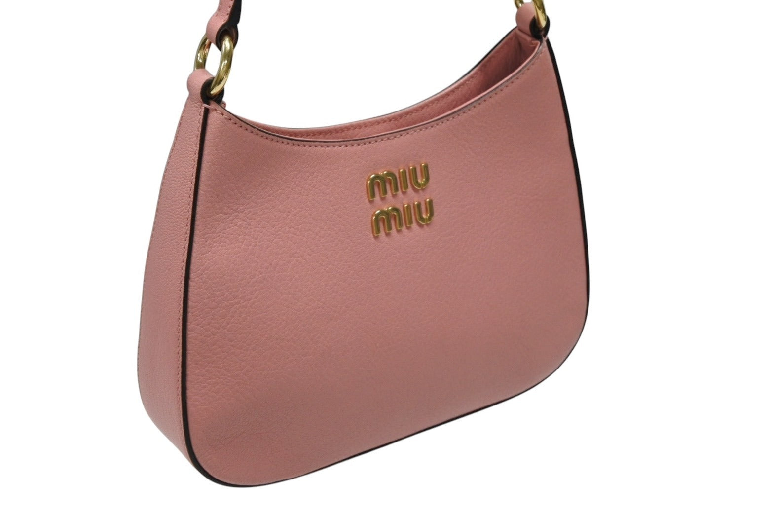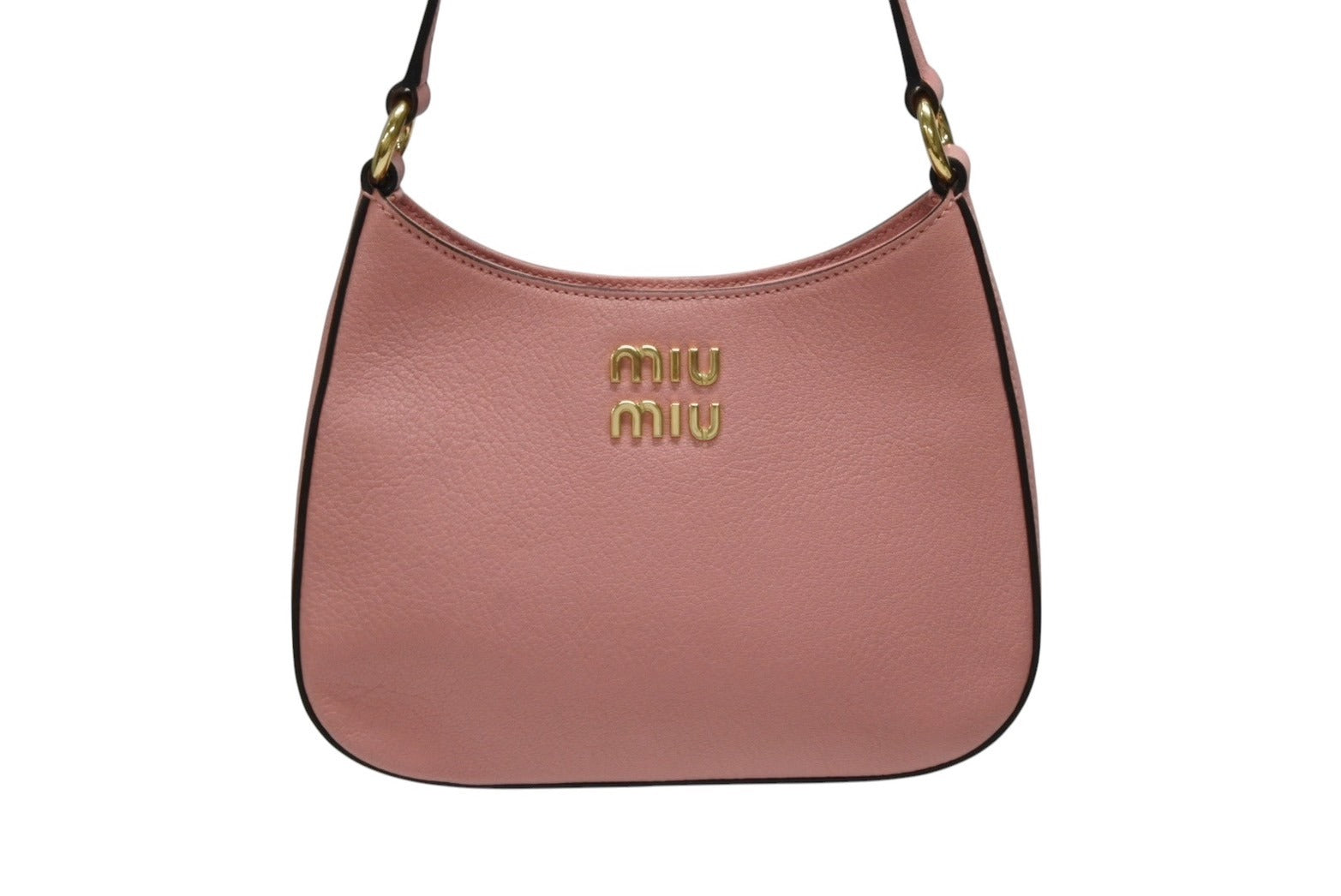 極美品 MIUMIU ミュウミュウ マドラス ワンショルダーバッグ 5BC105 ピンク レザー ロゴ金具 ゴールド金具 中古 4b008515