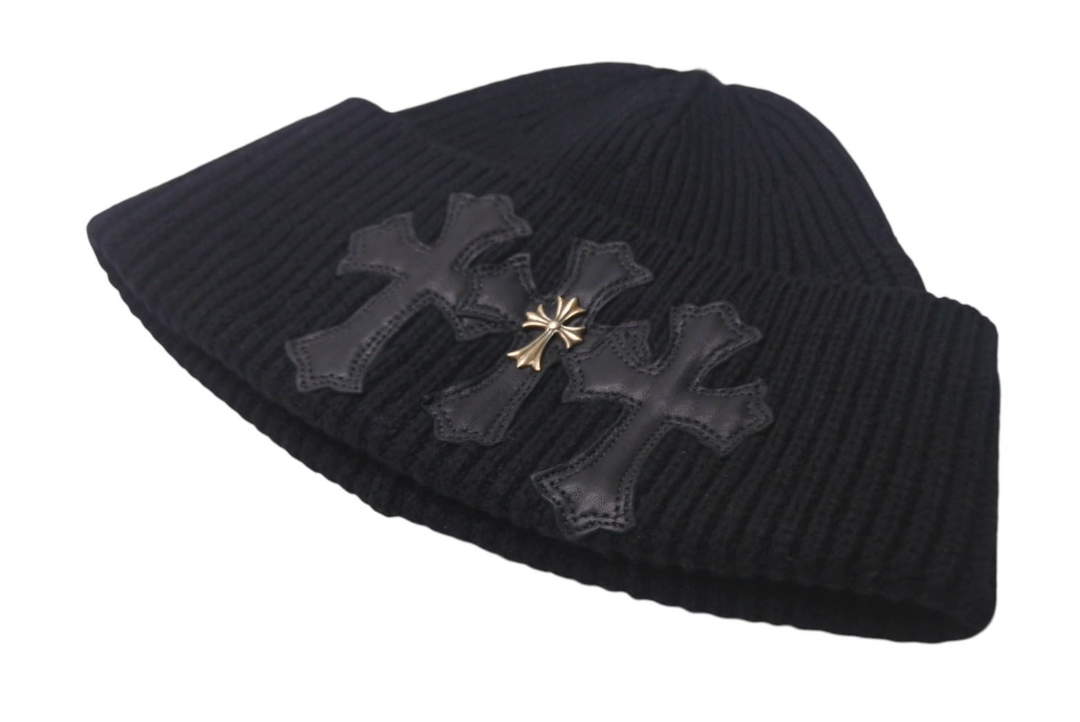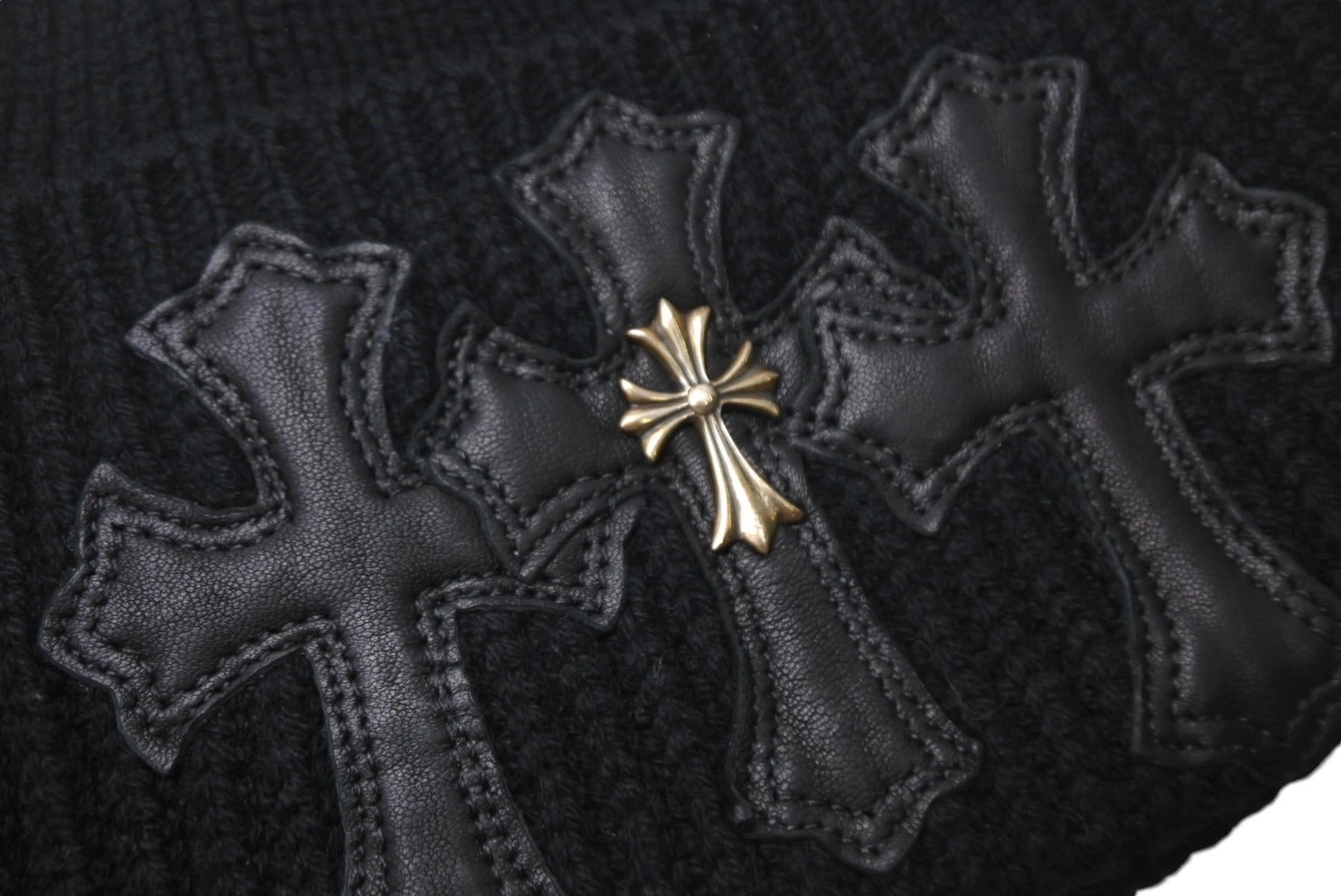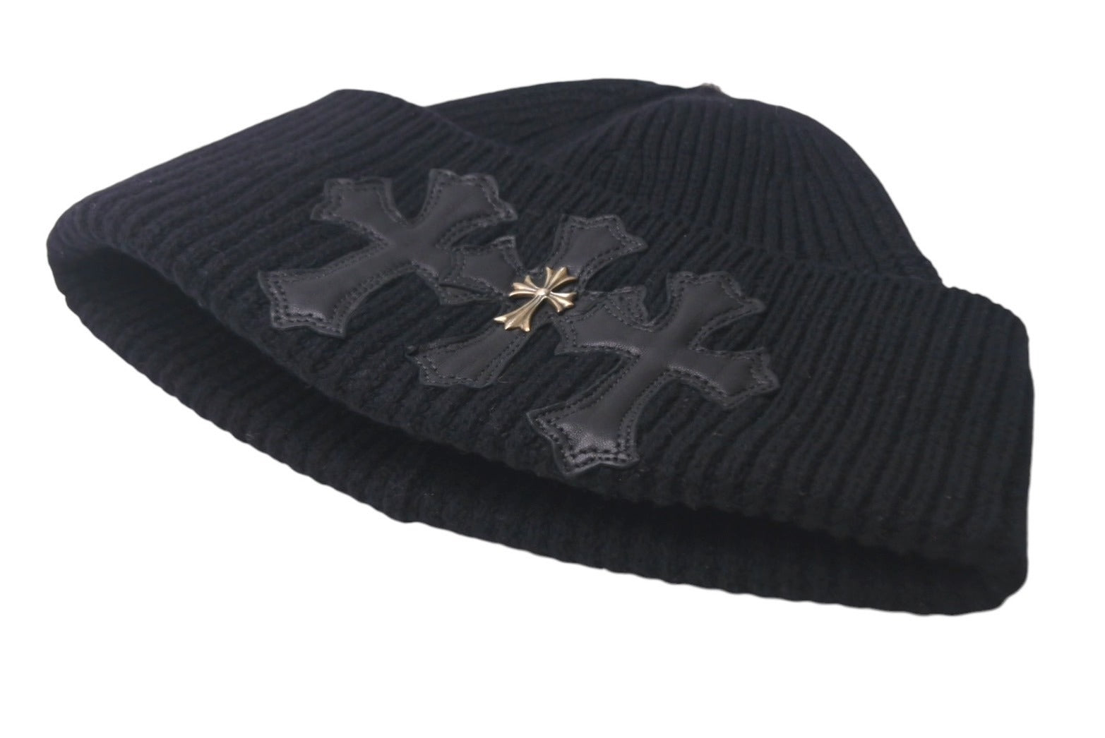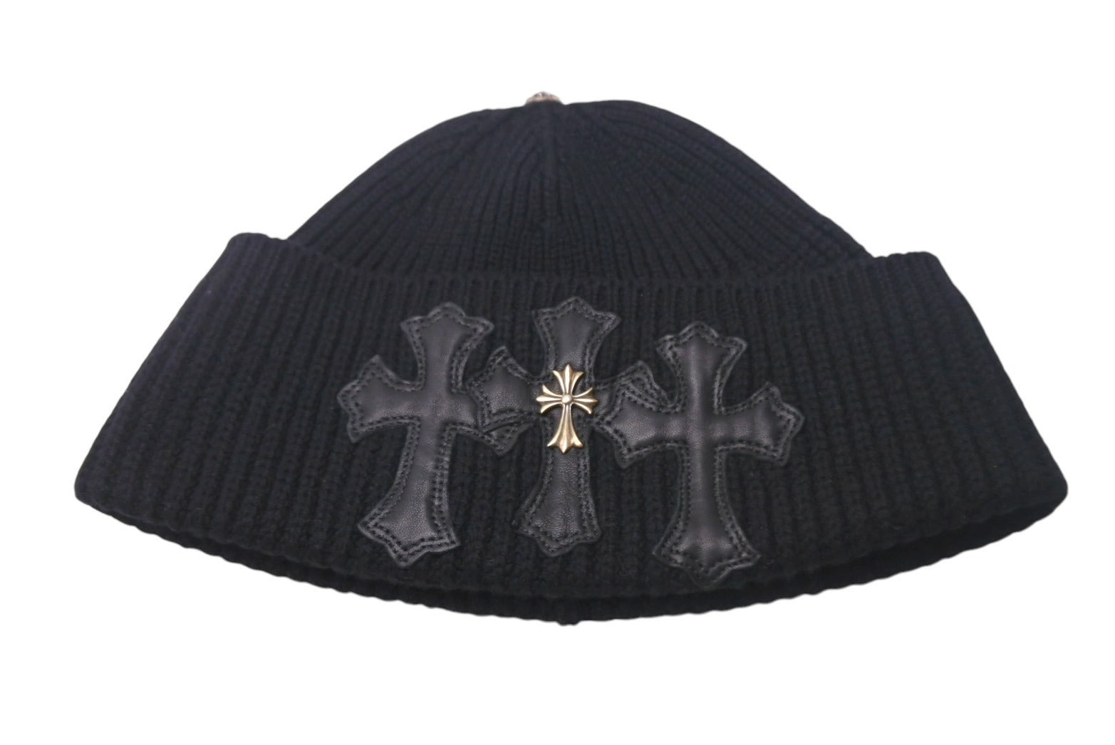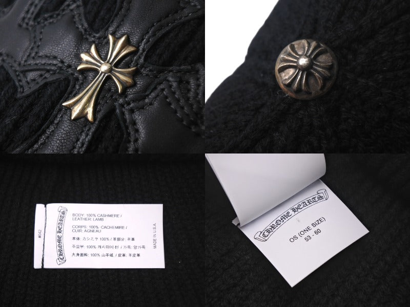 CHROME HEARTS クロムハーツ ビーニー ニット帽 クロスパッチ カシミヤ ブラック 美品 中古 4c067891