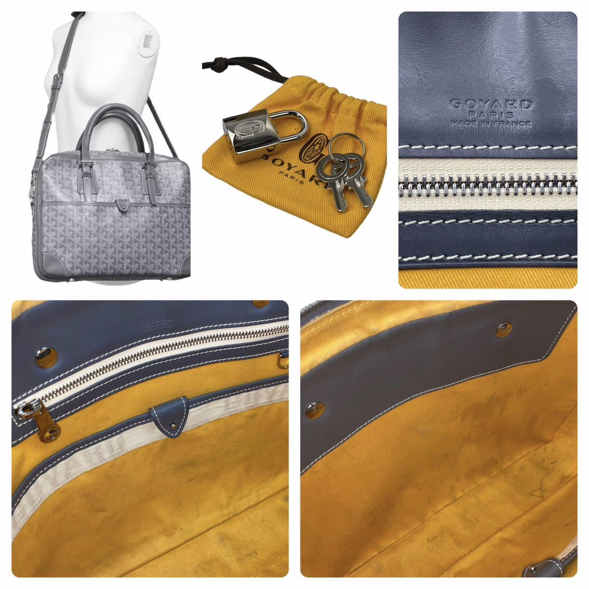 内ポケット含めスレ・汚れ、外ポケット含め汚れ・ペン跡、レザーもスレが見られます。