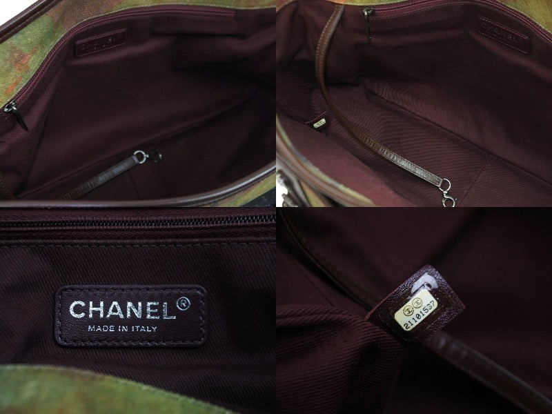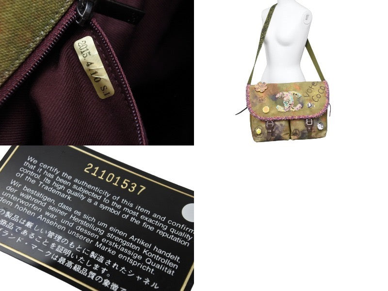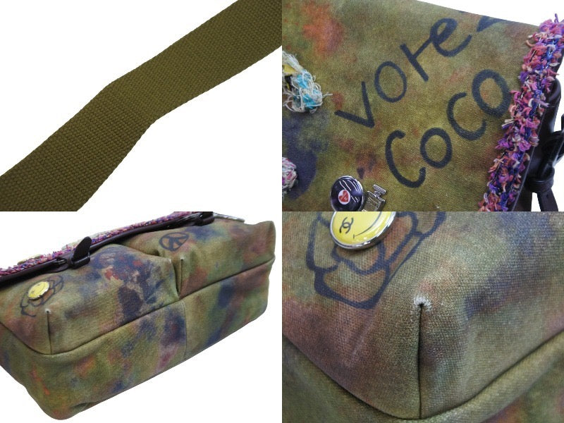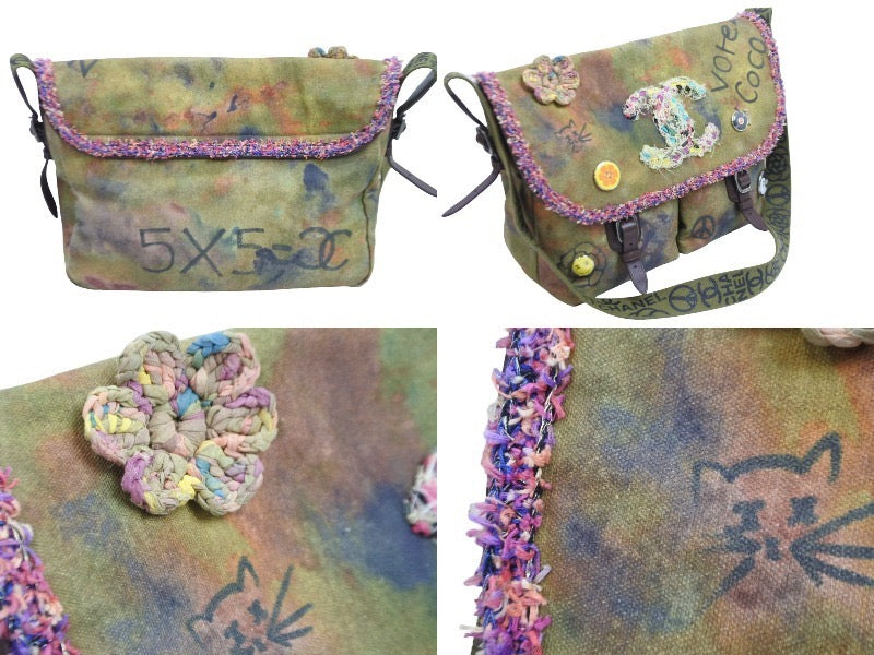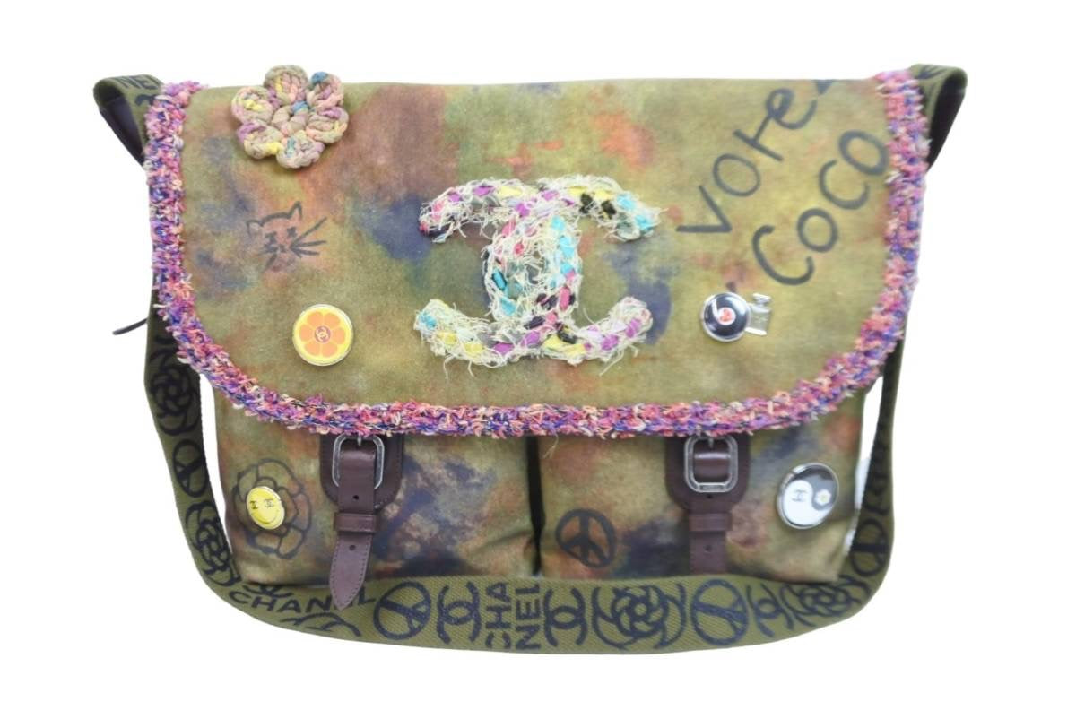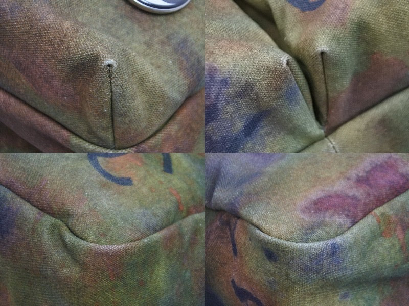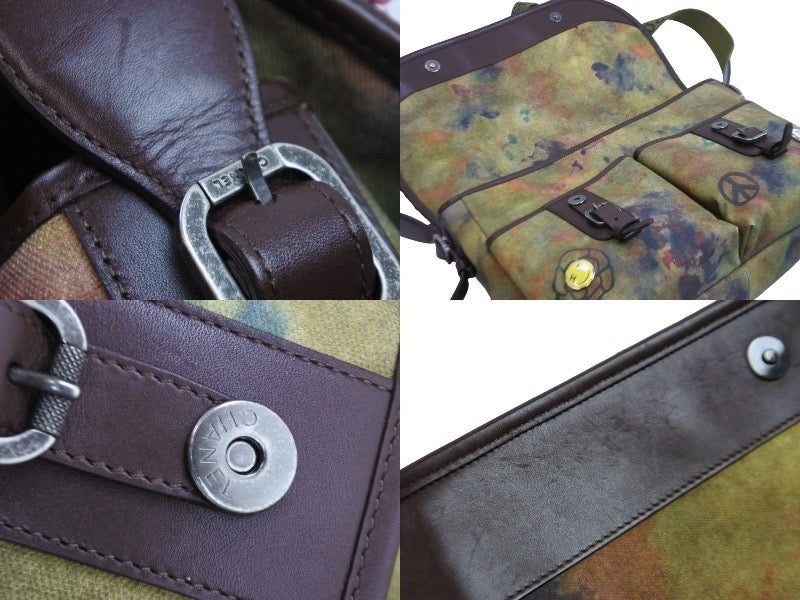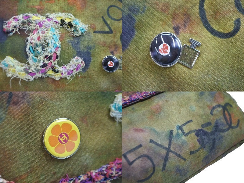 缶バッジが施され、キャンバスとツイードとカーフレザーが使用された可愛らしいデザインのバッグです。