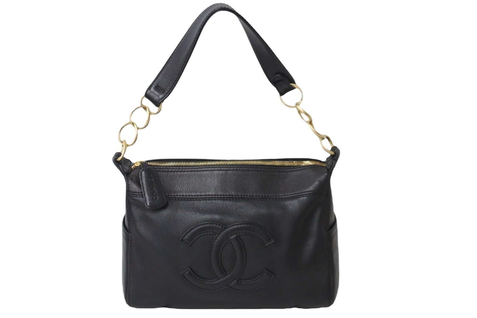 CHANEL シャネル ココマーク ワンショルダーバッグ 8番台 キャビアスキン GP ブラック ゴールド金具 美品 中古 54141