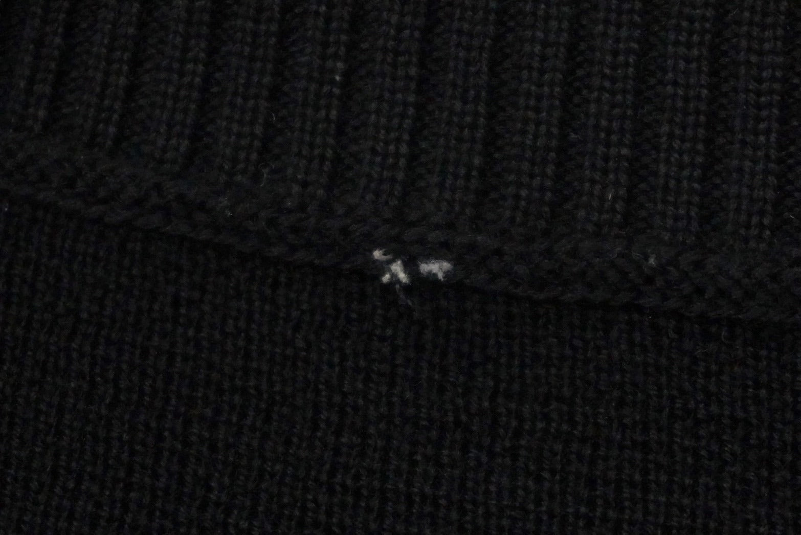 ニット全体的に毛玉羽毛立ちあり。ニット前面下部に白いシミありですが他に目立つ傷やヨゴレなく問題なく着用して頂けます。