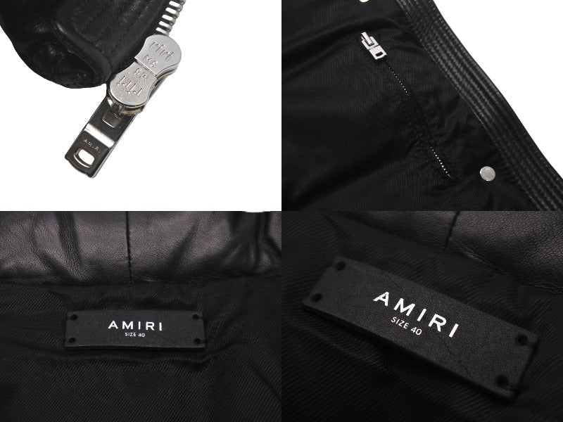 AMIRI アミリ シープスキン ダウンベスト 裾ドローコード スリット スタンドカラー ブラック サイズ40 美品 中古 60035
