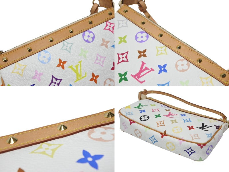 新品同様 LOUIS VUITTON ルイヴィトン ポシェット アクセソワール アクセサリーポーチ M92649 ホワイト マルチカラー 村上隆 中古 4b009546