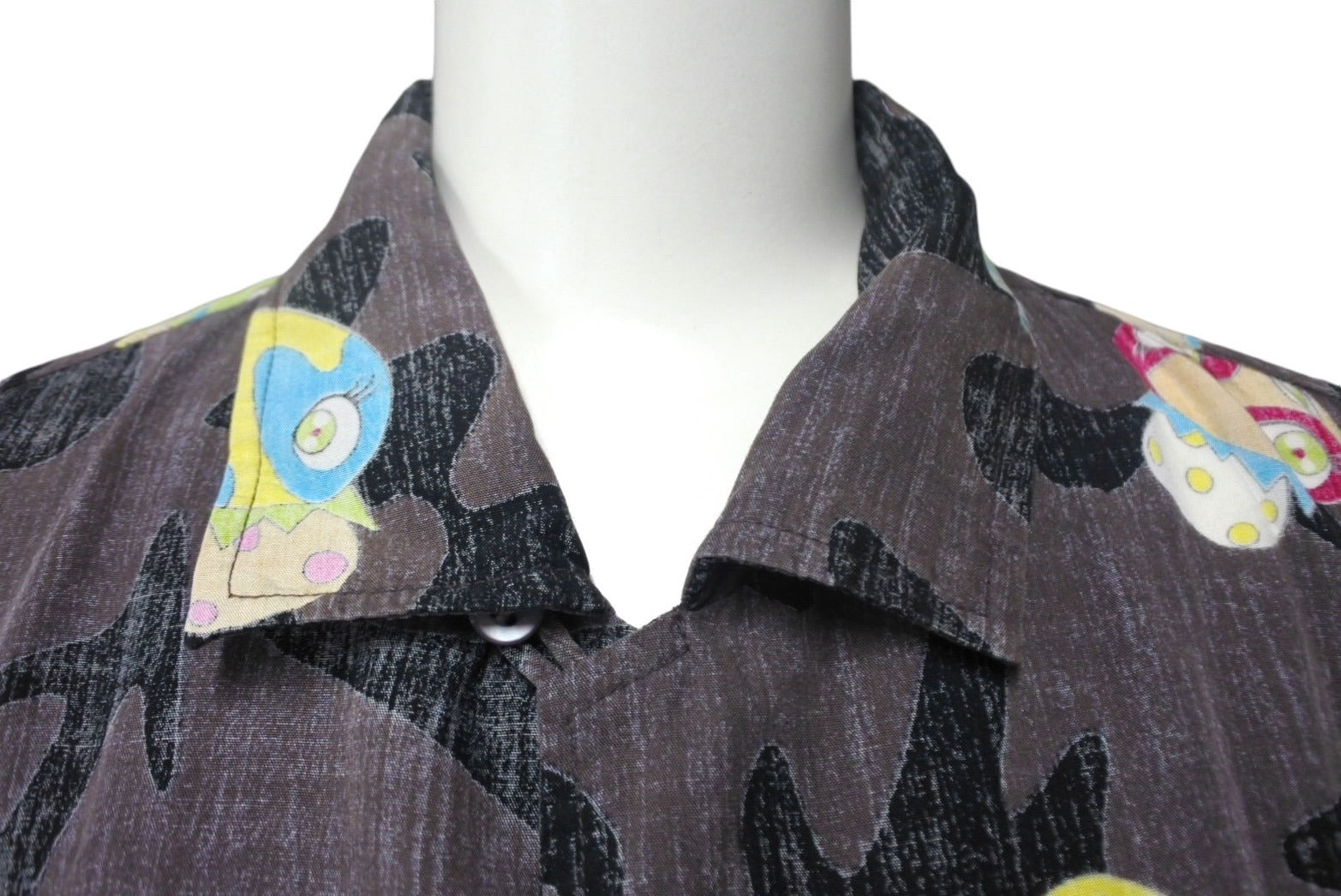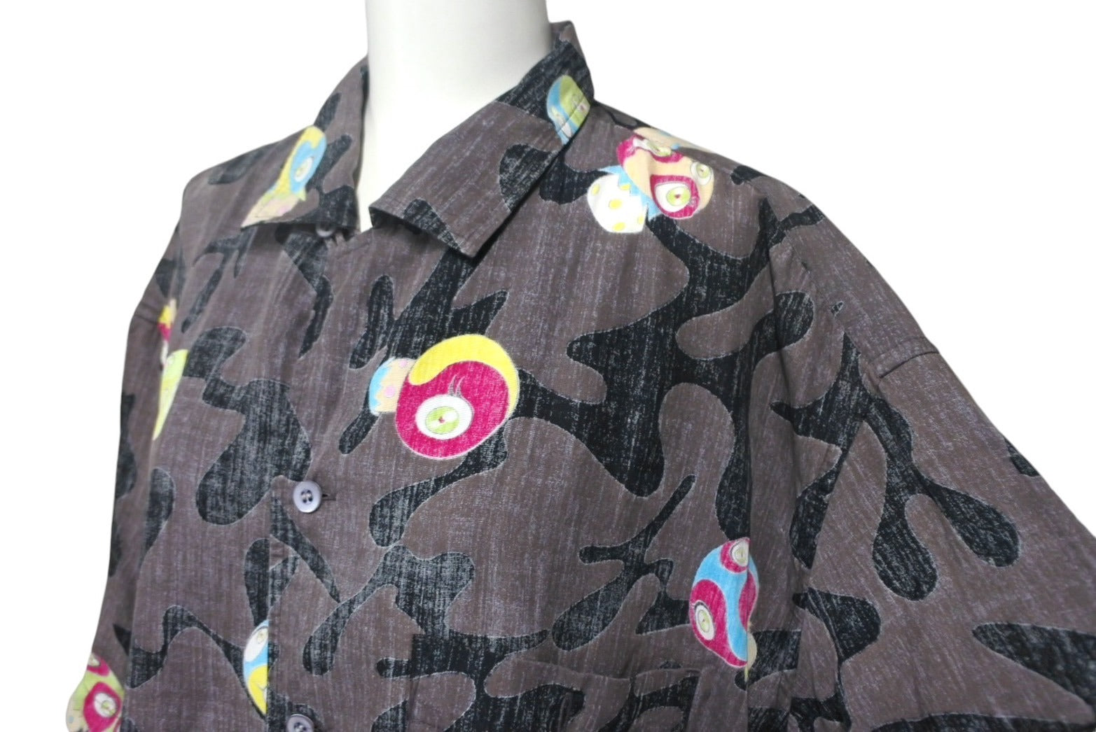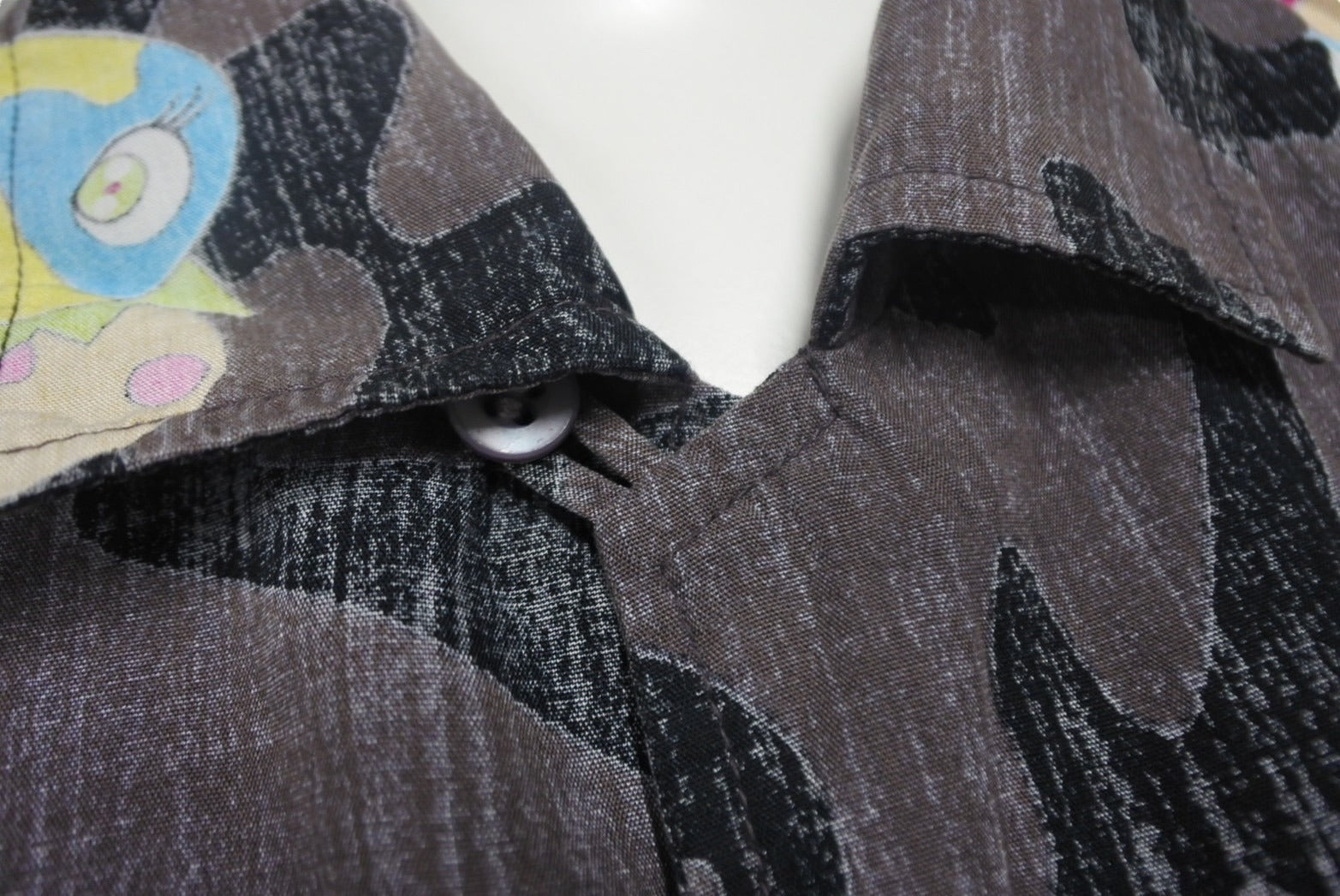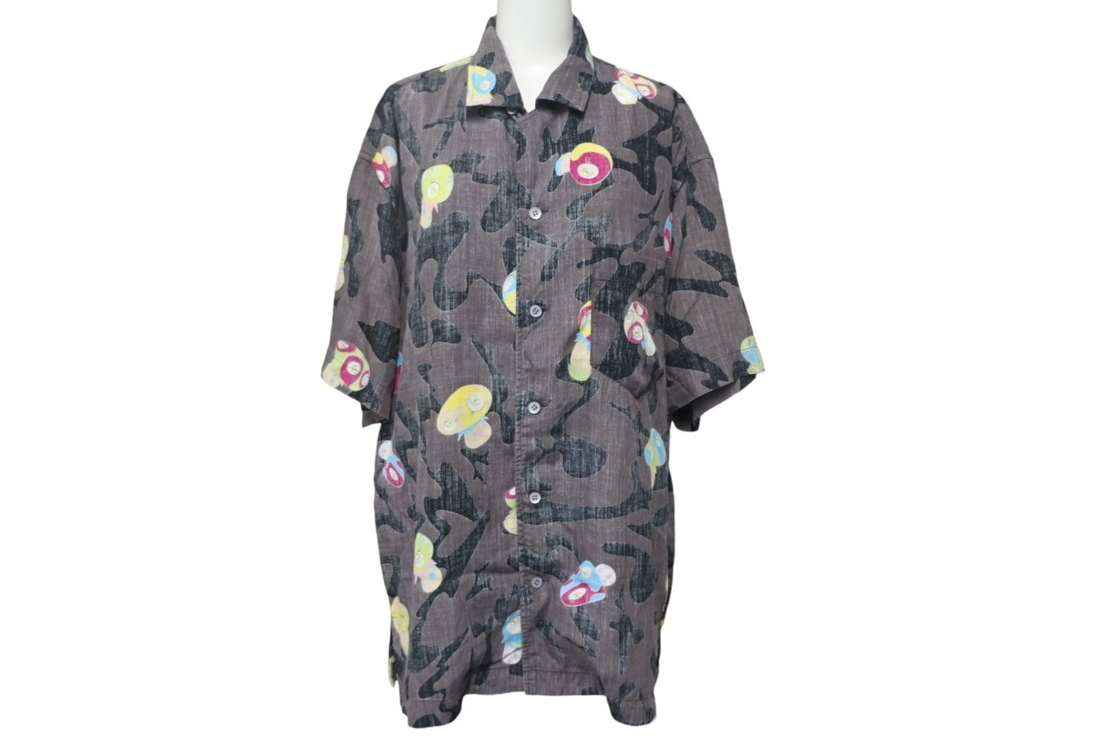 全面にポジきのこが散りばめられたデザイン性の高いシャツです。