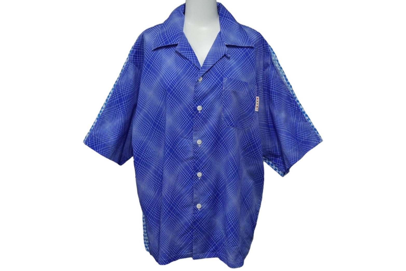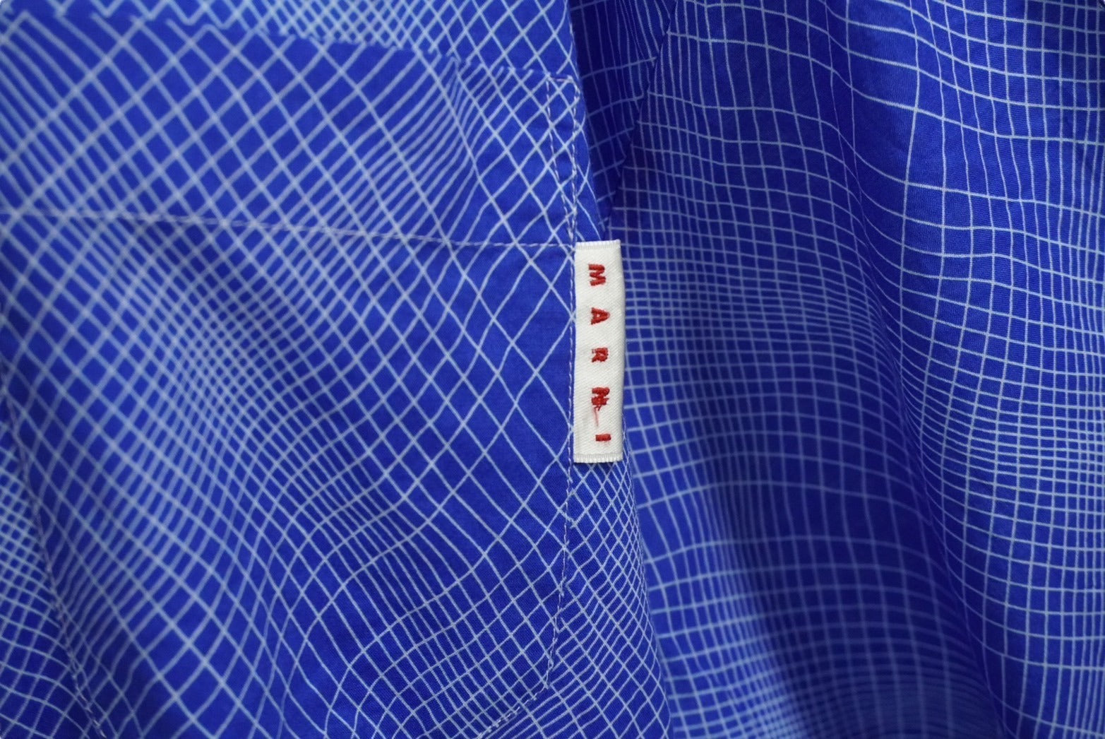 MARNI マルニ オープンカラーシャツ 開襟シャツ 半袖 コットン ブルー サイズ48 総柄 CUMU0234QY 美品 中古 60022