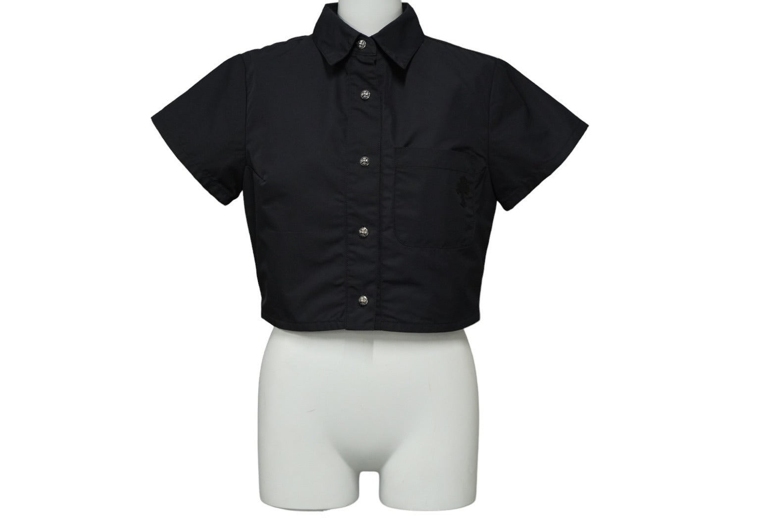 極美品 CHROME HEARTS クロムハーツ 半袖シャツ サイズS クロスレザーパッチ ナイロン シルバー925 ラムスキン 中古 61980